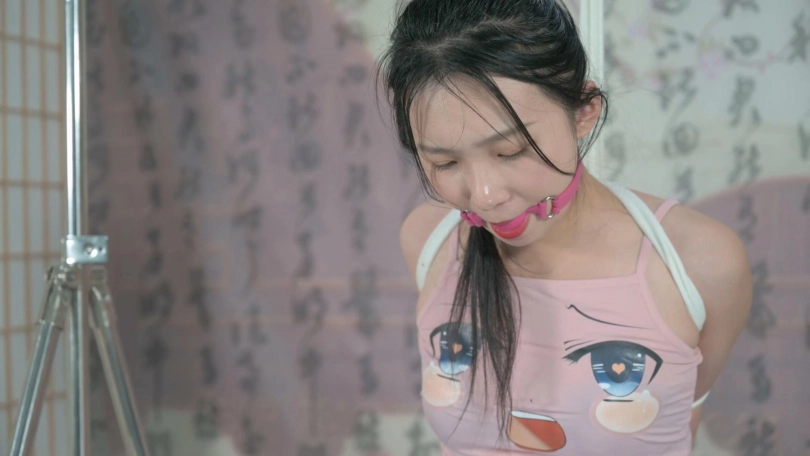 【撒琅制造】高挑妹子蹲姿和坐姿直臂缚--丝袜、高跟、口球、爱抚、TK、电击