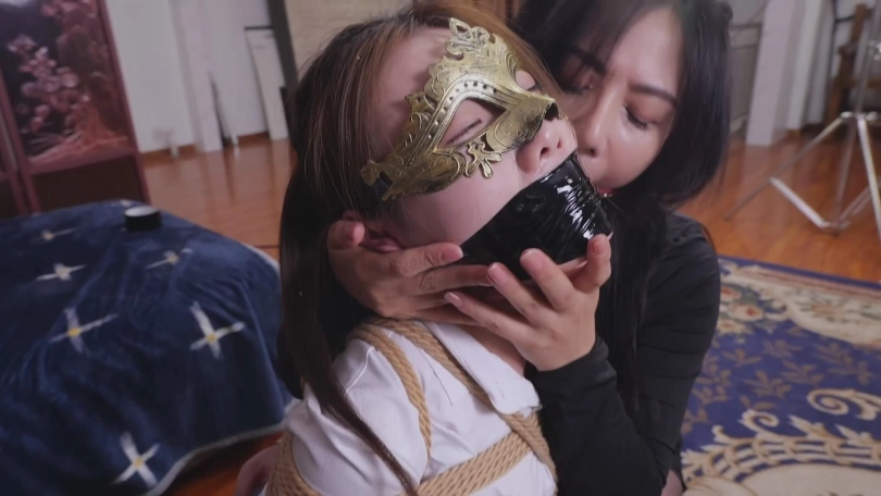 秦可音非常享受的调戏玩弄着跪缚当前的两位小侦探,她们两人