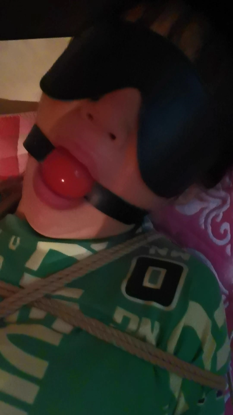 这是很早之前拍的了,偶然间认识的一位大姐。聊天中也不知道怎么把话题扯到捆绑上了。这大姐还挺好奇。恰巧戴着装备。就把这大姐给绑了。嘴里给她塞进去一个口球,眼睛蒙上。用快乐棒刺激她下面时,大姐全身一身,很快就发出很享受的呻吟声,脚趾也用力的撑开。这个片子主打的就是一个真实。