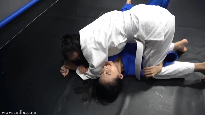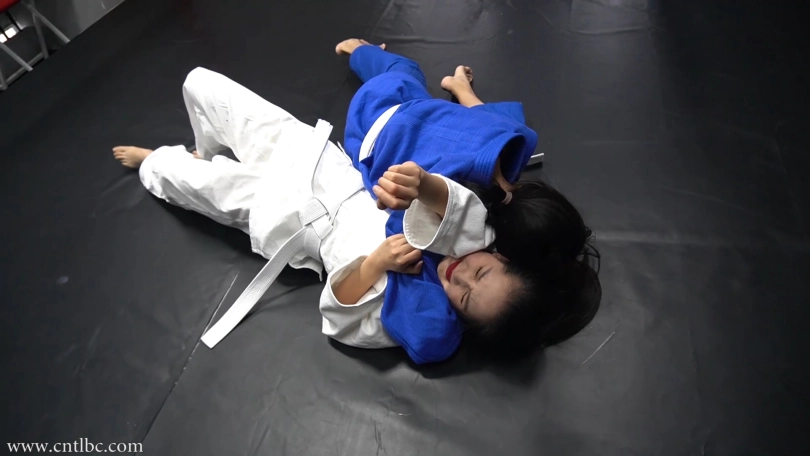 Jiao and Ting had a judo match. Wearing judogi, they started the match with a friendly attitude. They started on their knees. They used a lot of judo skills to try to subdue each other...