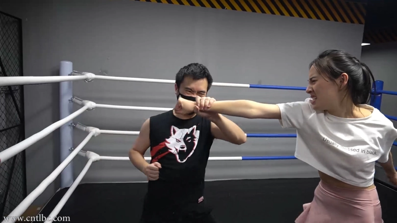 The sequel of TLBC-BR39.M reappeared at the gym a few days later after a cowardly victory over Ting.M peeped at the gym door to see if Ting was inside.Ting finished exercising and was organizing.She didn‘t notice M approaching.M knocked on Ting‘s shoulder behind Ting‘s back and saied,”Hi, coach.”When Ting turned around, M attacked Ting again...
