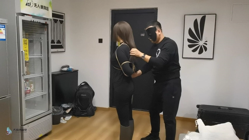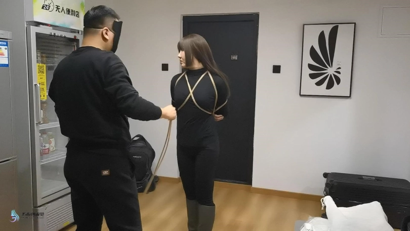 › 【JS】【艾菲】女努训练游戏黑衣长靴紧缚口球堵嘴墙纸高超