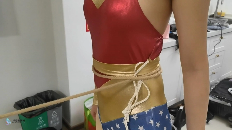 神奇女侠来到了毒腾女说的地点。进入房间后同样发现了大量女人的衣物和绳子,突然她发现地上图腾女的一只靴子,正在她思考是不是自己的搭档身处险境时,多条绳子从窜了出来,缠绕住了神奇女侠的手脚,胸部,脖子等部位。神奇女侠惊慌的挣扎着,但很快就被绳子拉[X_X]。并被大字捆绑在床上。
