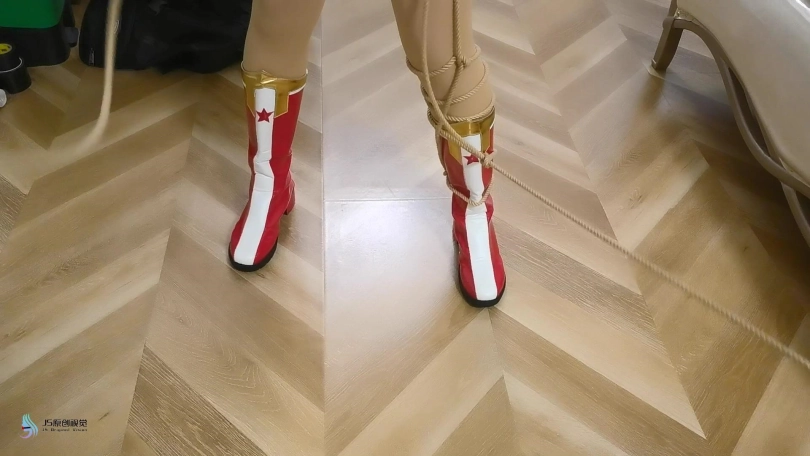 一条绳子缠绕住神奇女侠靴子的拉链,女侠惊呼“不要,不要脱我的靴子”,但这并没用,很快女下的靴子