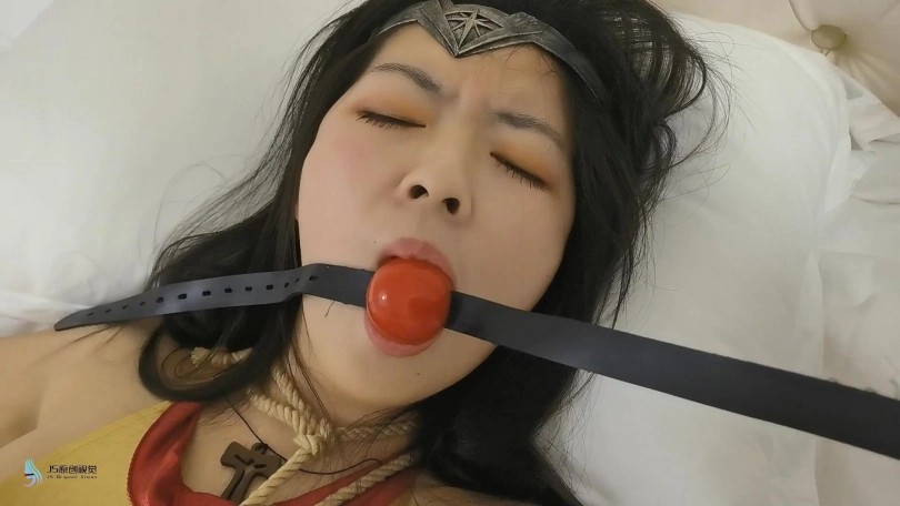 被绳子拖拽了下来,神奇女侠的一双被肉色丝袜包裹住的美足展露了出来。绳子用缠绕着一只口球塞进了女侠的嘴里,又将一个电动跳D塞进女侠的裆部。很快神奇女侠发出非常享受的“呜呜”声。并扭动着身体在床上舒服的扭动着。。。