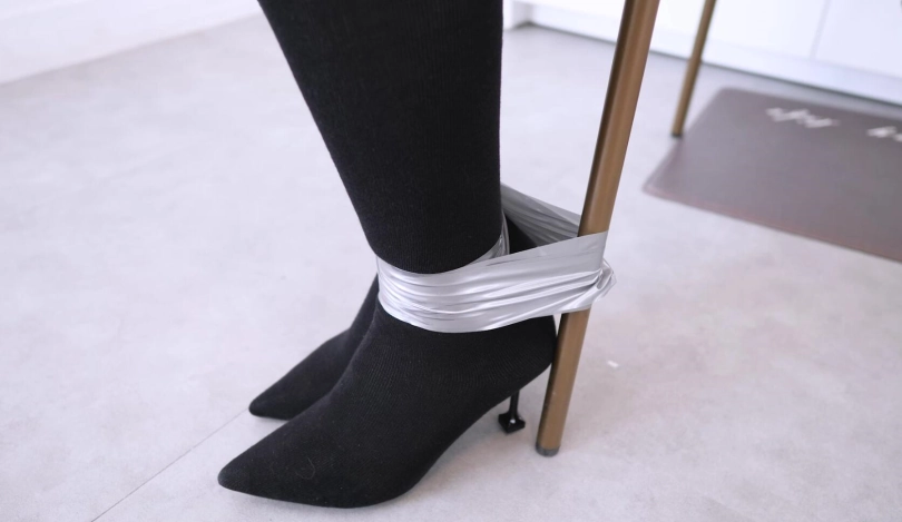 【4K映像】黑色长靴袜靴,超薄肉丝,双倍快乐,锁住酸味,银色胶布