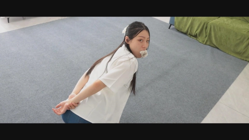203堵嘴完毕后,再重新穿上一双新的同款白棉袜,然后把手攥拳,用银色胶带缠成球之后套上白色棉袜,先用扎带进行kb,kb期间配音:各位看到了吗?我的手脚都被扎带绑起来了呢,连脚掌和脚趾都没放过哦,而且手被胶带缠成球了,根本没办法解开呢,但是你们以为这么简单就完了吗?那可大错特错了。