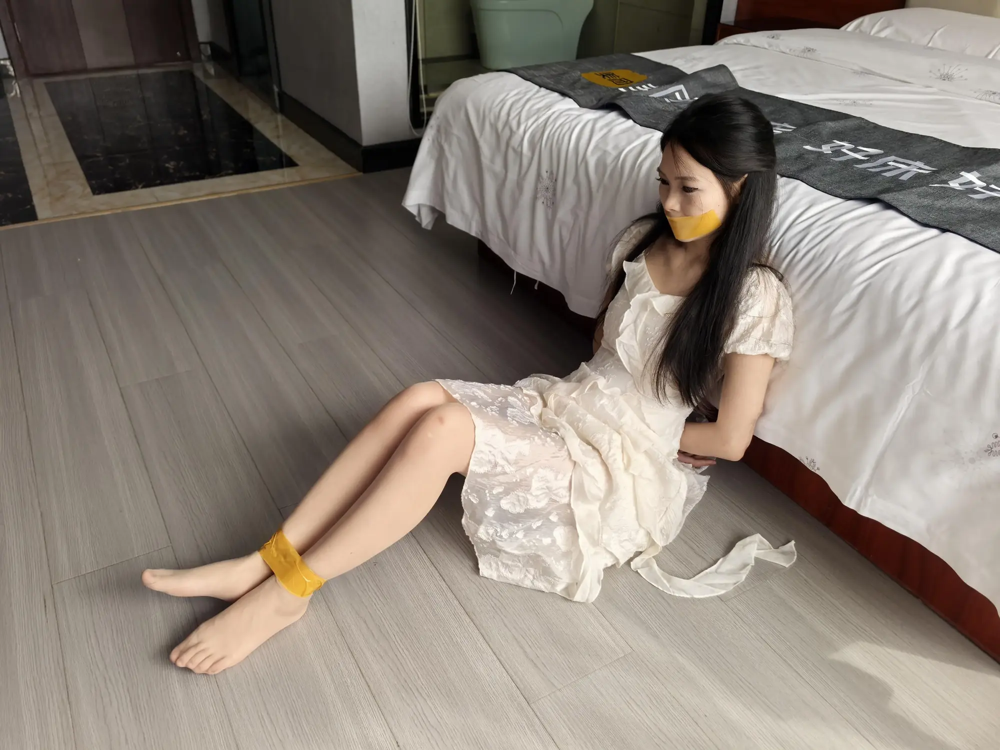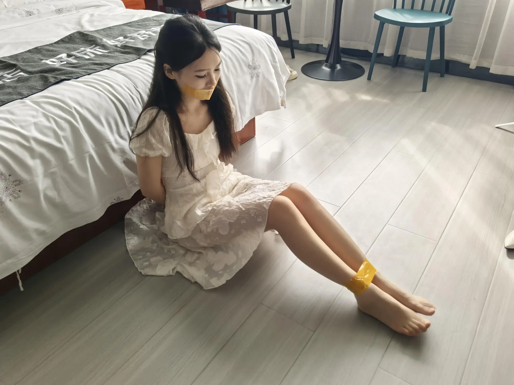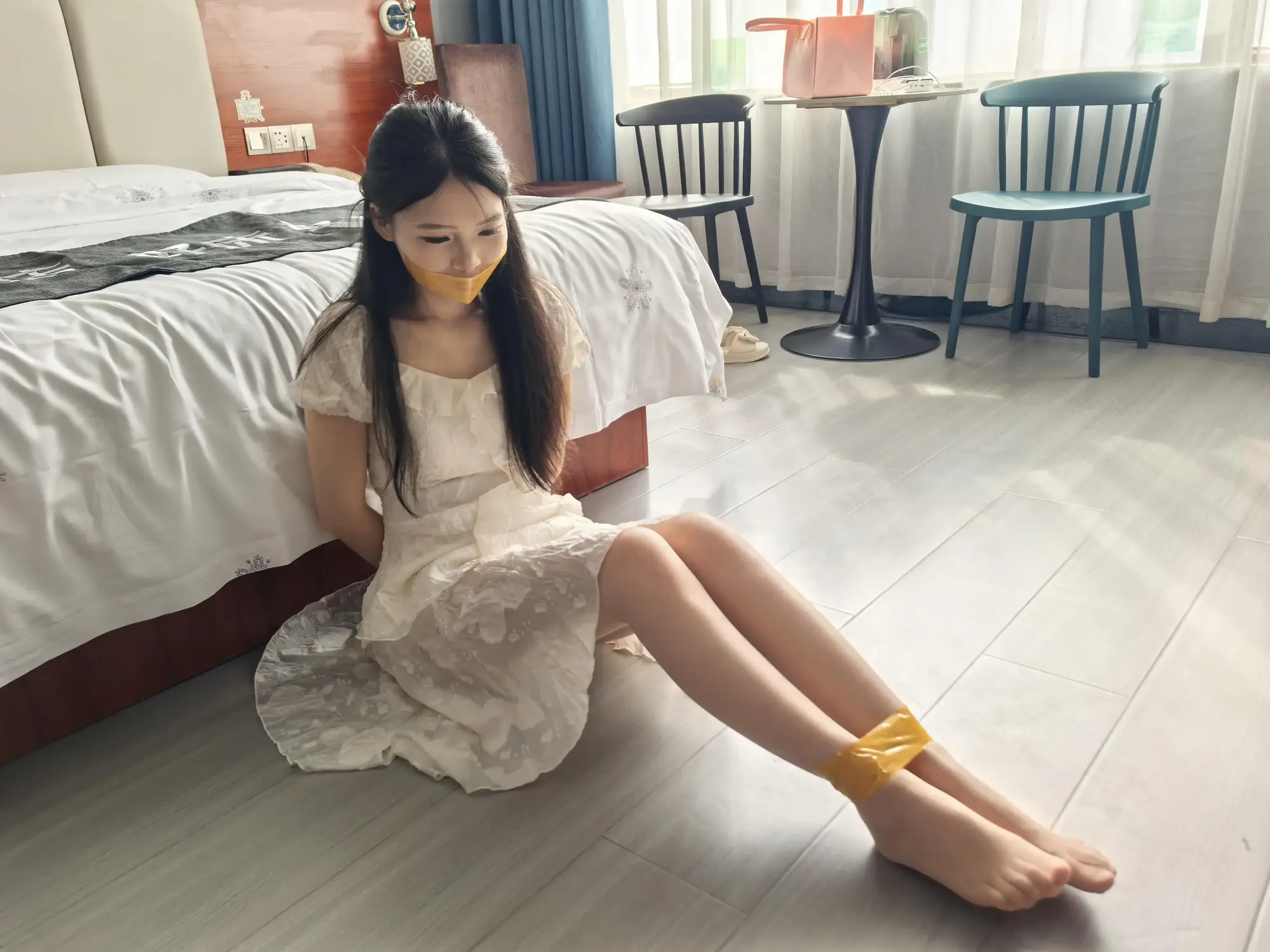 蓝羽刚来拍摄第一天就马上接到客户的小定拍,刚开始还是有点放不开,第一次被绑起来挺好玩的。