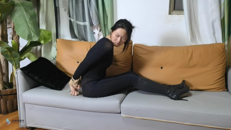 哈尼把木溪拖回沙发上,把球塞放在木溪嘴里,抚摸着她的头发,欣赏着她的美丽。这次她开始把木溪绑起来,当她完成时,重复与前一幕相同的按摩/抚摸。穆希昏迷不醒,从不睁开眼睛,只是微微高兴地回应。