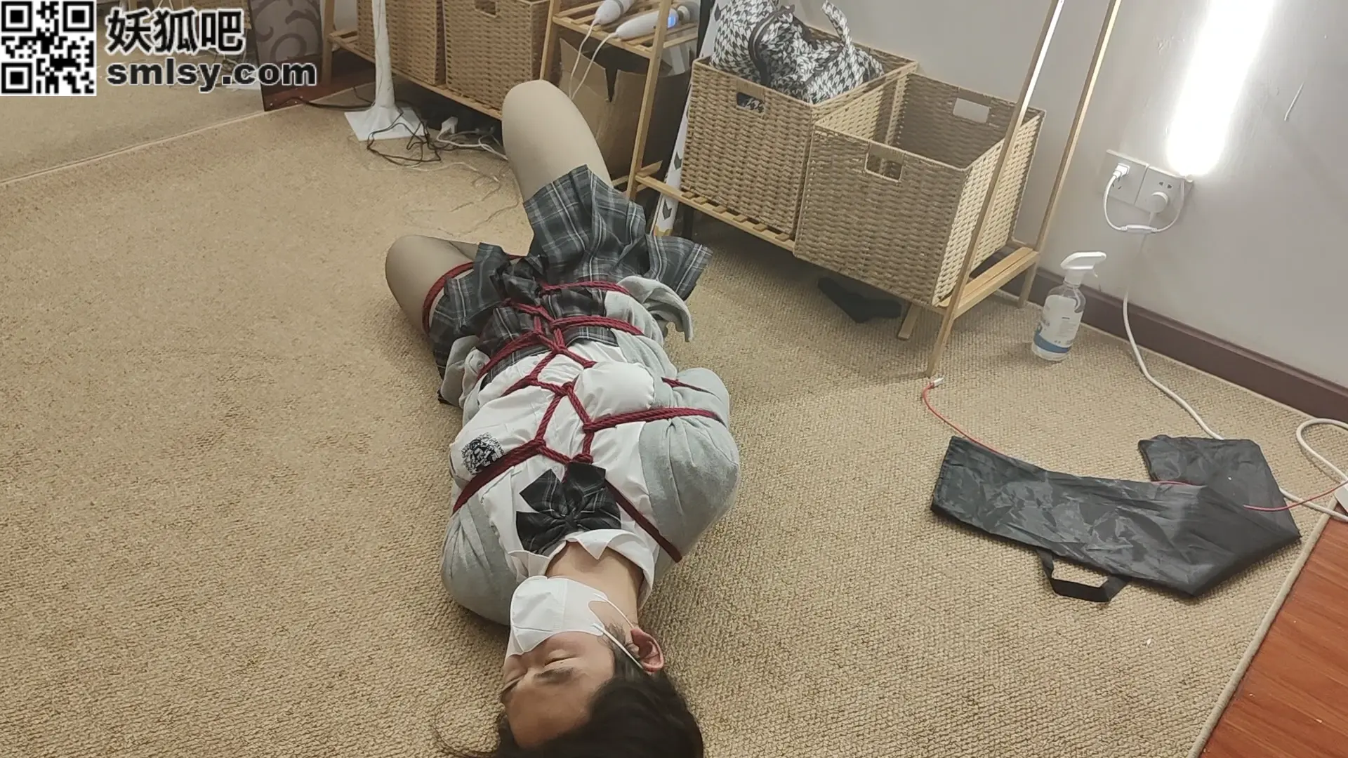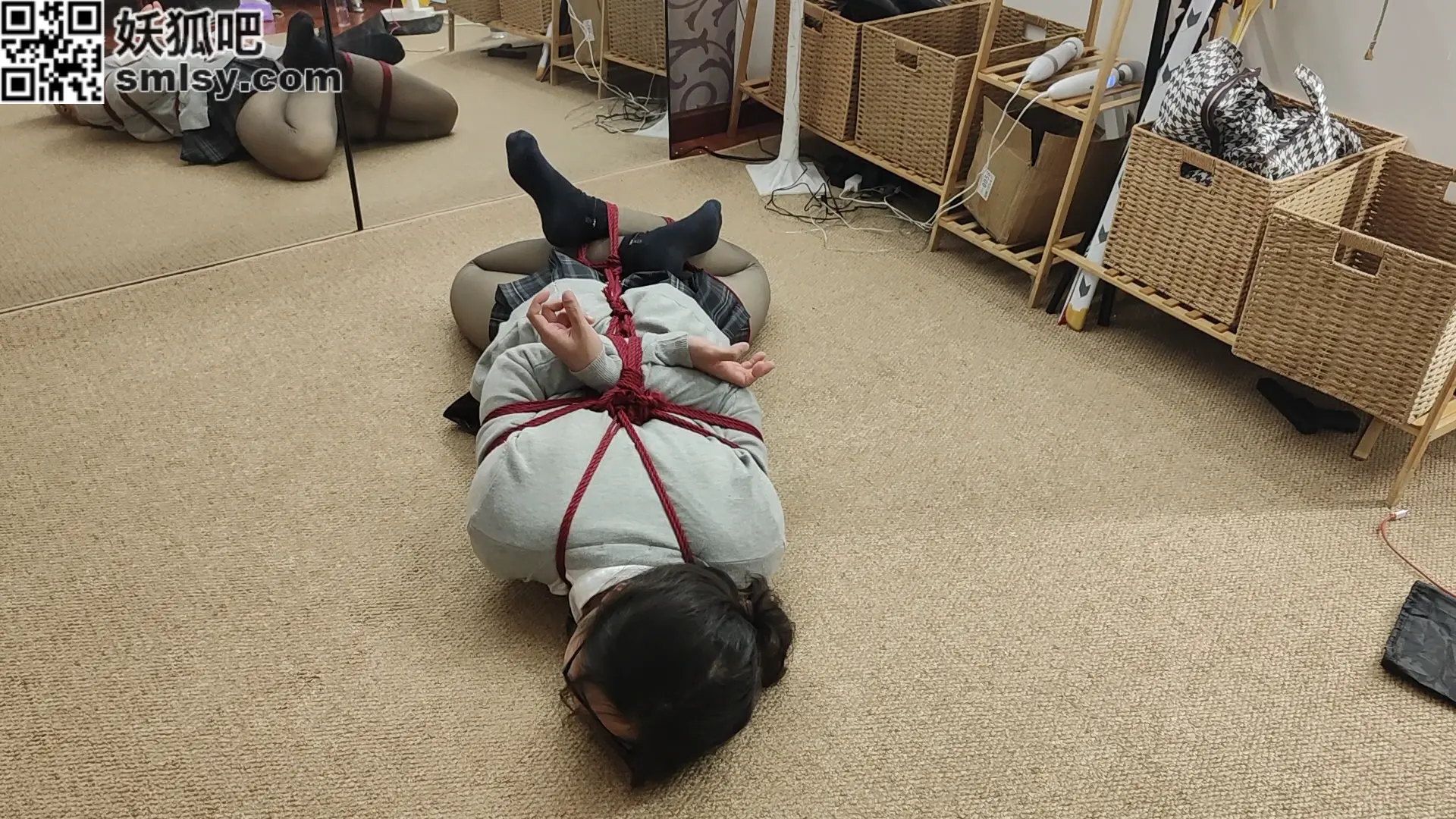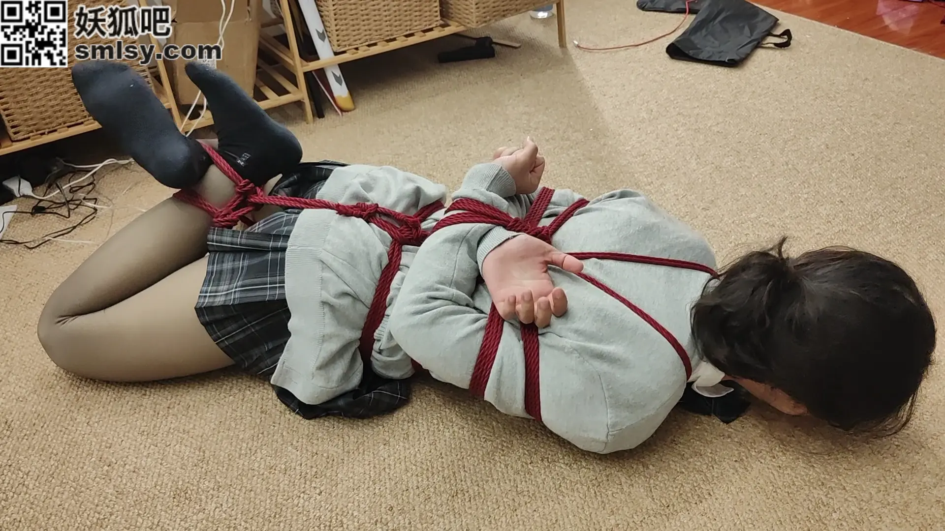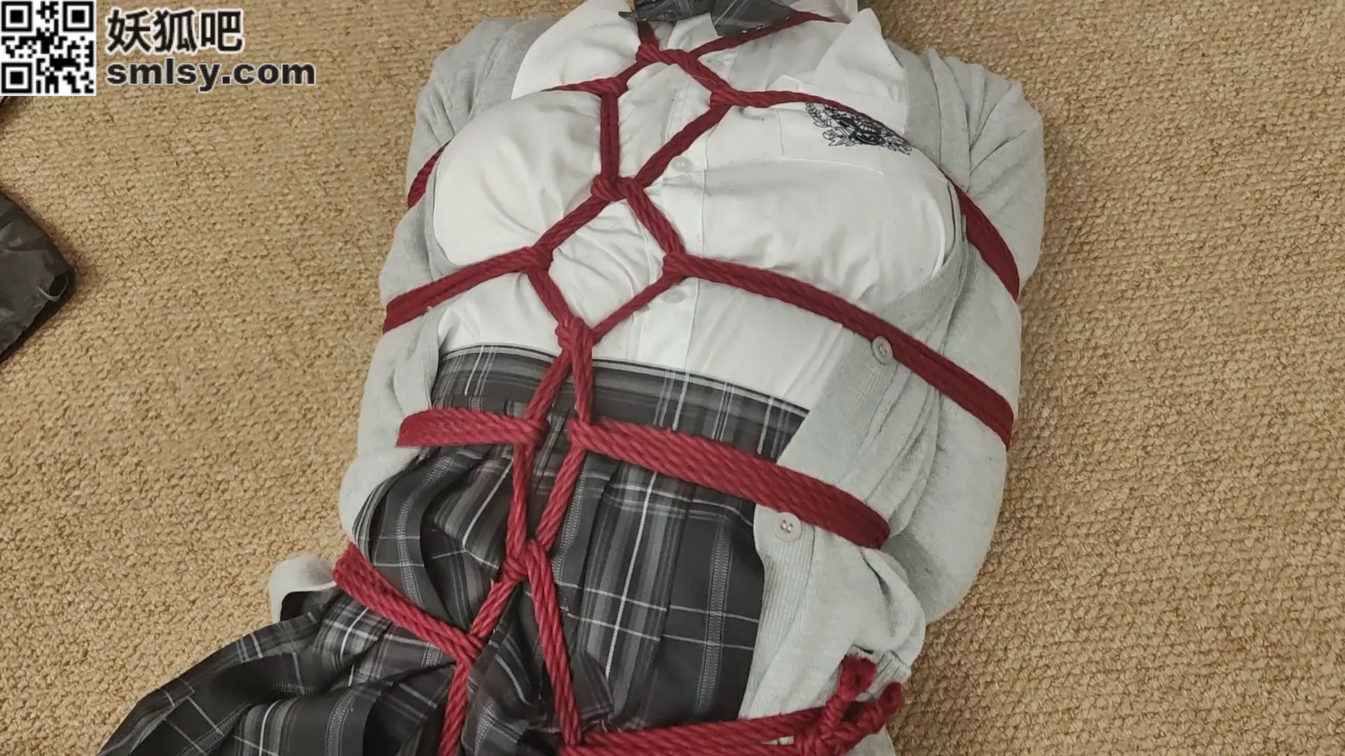 特殊改良过的龟甲缚,可以将手也捆成日式后手的姿势,再加上逆海老和前锁的限制,任由小m怎么挣扎也无济于事,就让他下面胀半个小时吧。