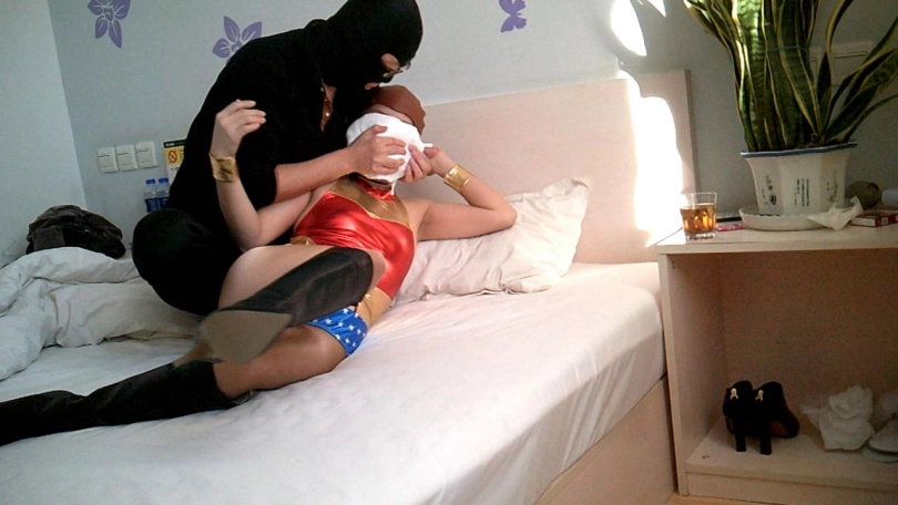 【JS】碧凡 女超人 黑靴 迷晕 袜子塞嘴 头套 驷马