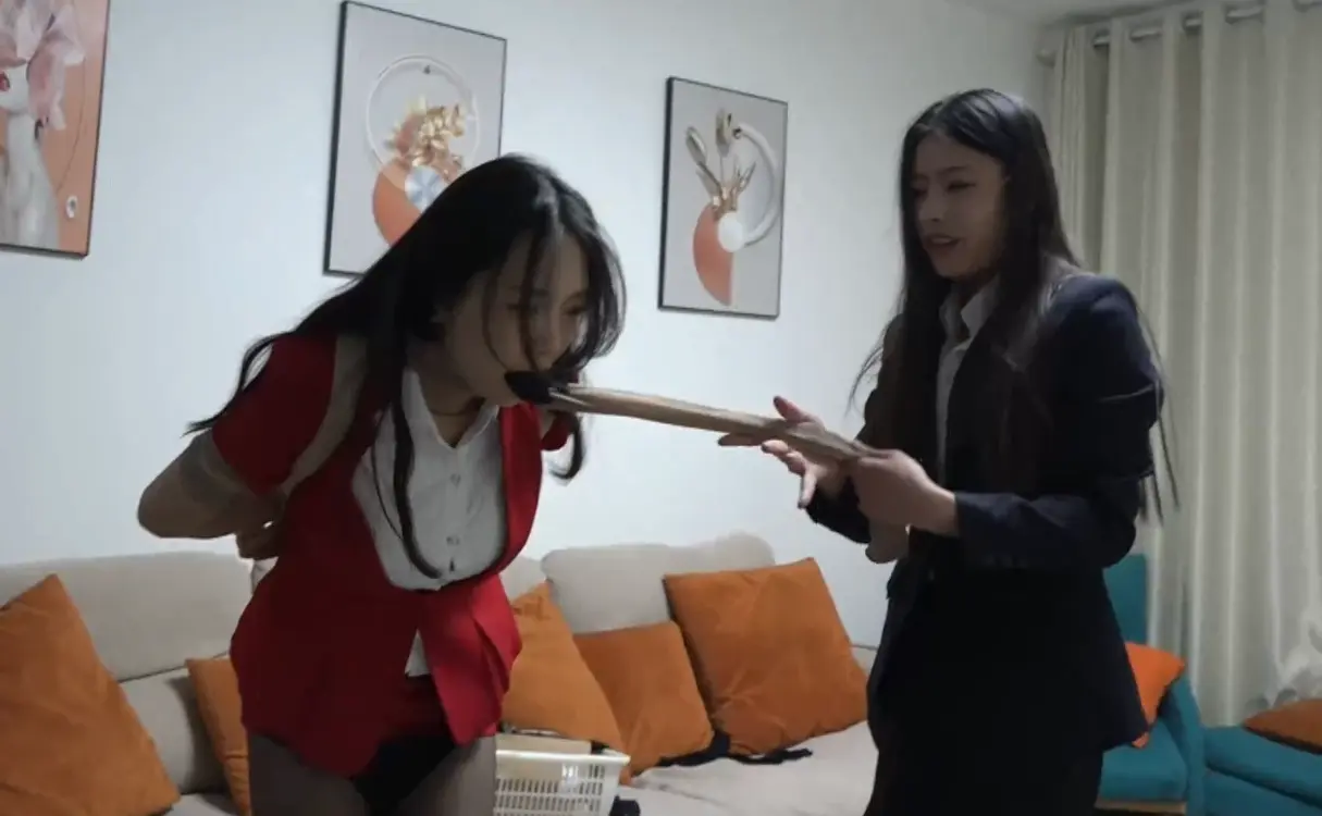 被罚下跪+高跟鞋捂鼻子的惩罚。