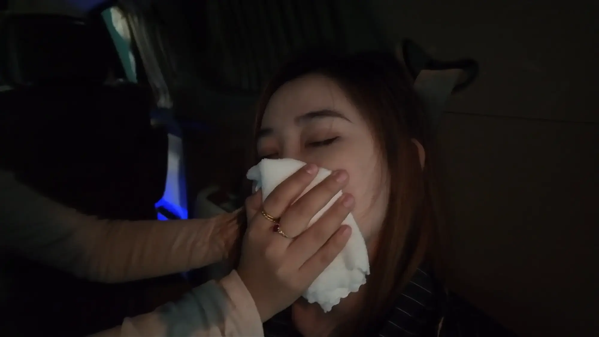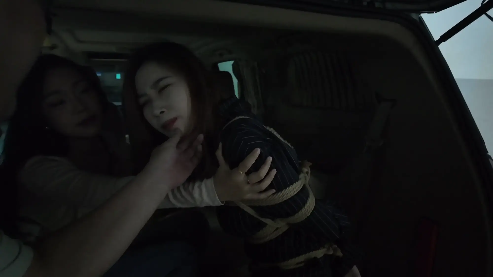 半路中,南清苏醒开始呻吟挣扎,躺在后备箱睡着的雷姐被吵醒,正当准备教训南清的时候,车忽然急刹,雷姐训斥小弟得知是汽车爆胎泄气,三人无奈只好暂时原地休息,两位小弟见南清肤白貌美起了歹心,突然雷姐背后拉开了两人,命令他们什么也不许做,赶紧想办法把车修好。两位小弟很不情愿的蹲在一边抽烟,雷姐开始挑逗南清,表示她这么极品的“货物”可不能让那两个废物小弟糟蹋了,想起卖掉南清后马上就能名利双收,雷姐大笑了起来,一旁的小弟敢怒不敢言,只能偷摸的骂雷姐泄愤。