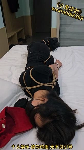 › 【小黑】大学生背着男朋友来体验捆绑,男朋友在家等她,她说中途有生理反应了,马具充气口塞堵嘴干呕,直臂紧缚挣扎。