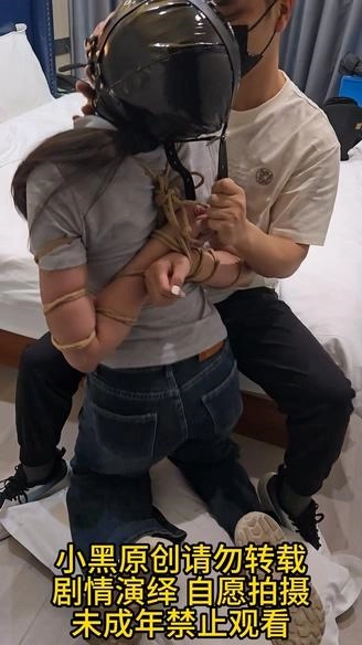 【小黑】五花后高手缚,马具口球堵嘴,玩弄挣扎。
