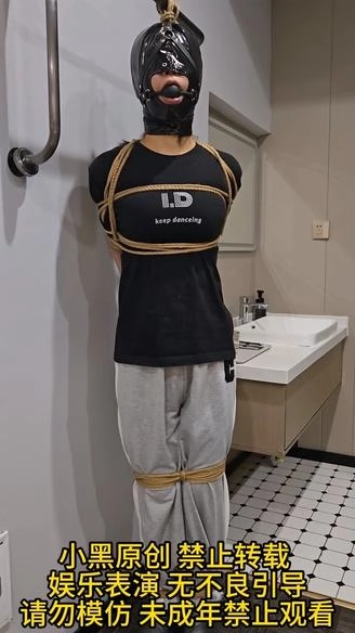 【小黑】用马具口球把头吊起来,挠痒挑逗,挣扎的很厉害,但是逃不掉,最后吊脖绞刑玩弄!