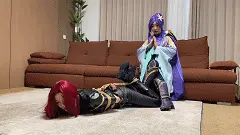 尽管前期剑姬挣脱了束缚并与卡特决斗,但还是因为大伤未愈的原因败下阵来,被捆绑脱鞋脱袜TK。聪明的剑姬利用卡特狂妄的弱点,反败为胜,成功抓住卡特,并且以其人之道还治其人之身。