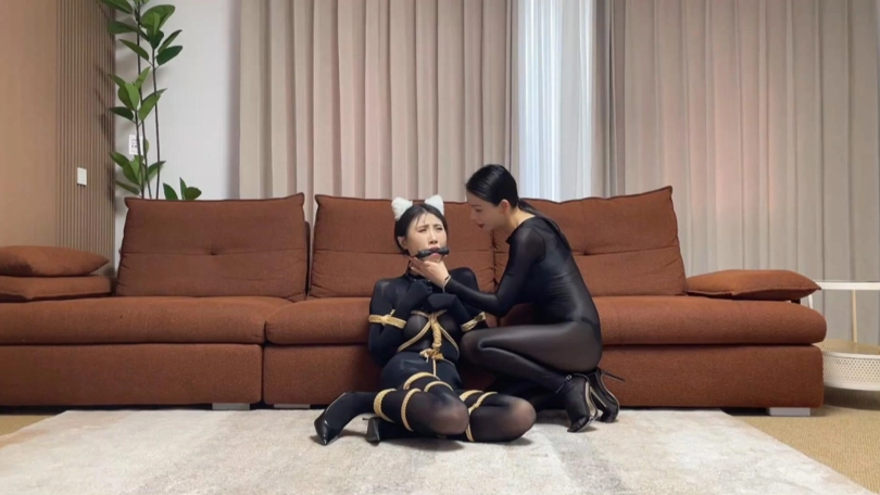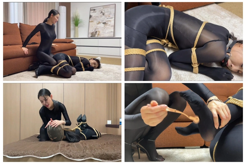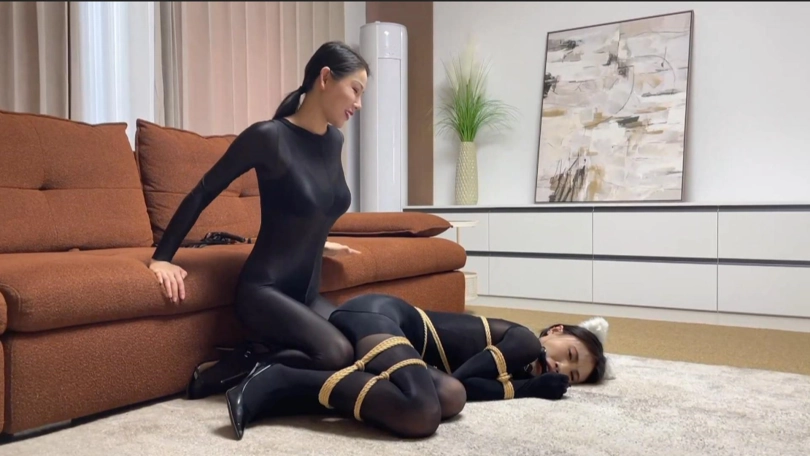 请到的模特是柳洋和恩可(七七),这个系列视频的剧情内容为女特工在家自缚以练习脱缚术,不料却被女飞贼入室偷袭迷晕,在被女飞贼捆绑玩弄之后,女特工利用飞贼外出取钱的时间挣脱束缚,最终反杀女飞贼并狠狠报复她。具体的角色对话如下,本期几乎全程捆绑,不需要跳转即可进入正片。