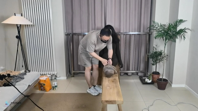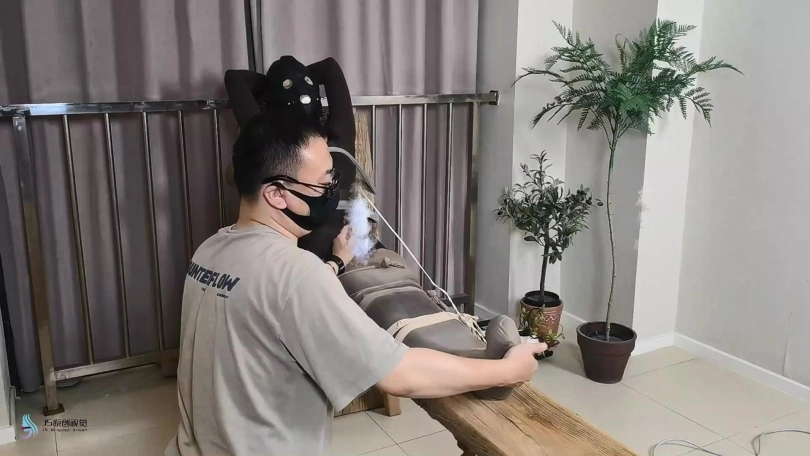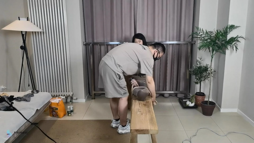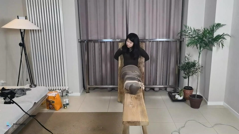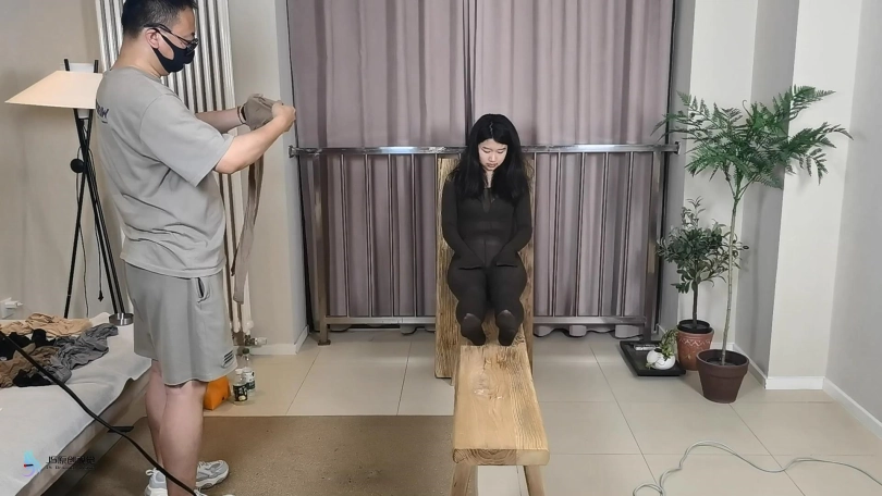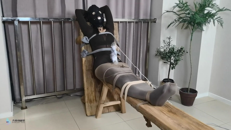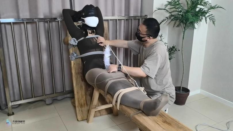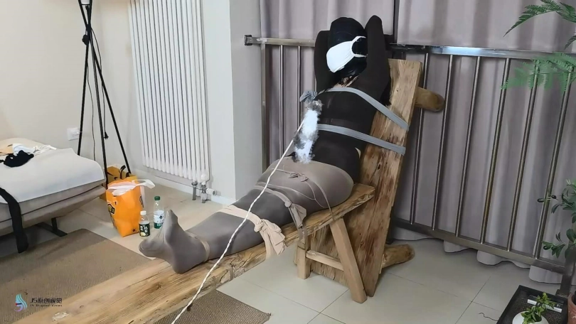 › 【JS】【妙一】尼龙女孩老虎凳束缚丝袜包裹纱布堵嘴头套口罩原味棉袜封鼻棒棒刺激