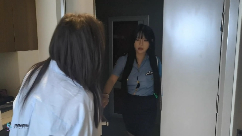 A女士开了一家主题S,M酒店,酒店房间内全是各种道具供客人玩耍。有一天,女JB小姐接到报J电话,一名入住过该酒店的客人声称酒店房间内装有隐藏摄像头,希望对其进行调查。B小姐放下电话后立即前往酒店,见到了酒店老板A女士后,让A女士带她进入房间进行调查,A女士表面上笑脸相迎,将B小姐带入了房间,趁B小姐在房内四处寻找摄像头的时候,A悄悄掏出一块沾有药物的手帕从背后一下子捂住了B的口鼻,B挣扎了一会儿后便失去意识晕倒在地。A看着躺在地上的B,喃喃自语道:“这么漂亮的女J,得好好调焦她一番才过瘾”说完便将B拖到了床上,用绳子将其绑了起来…B醒来之后,发现自己竟被驷马绑在床上无法动弹,这时A走了过来:“哟,J花小姐,您终于醒了”B挣扎了一会后愤怒地说道:“你在干什么,你这是袭J你知不知道,赶紧把我放开,不然你就等着去牢里过你的下半辈子吧”A听完笑着说道:“哎哟喂,不愧是女J呀,都被绑成这样了还是这么凶,J花小姐,你可看好了,这箱子里装的道具可都是专门为您准备的,我非得把你调焦成我的宠物不可”A说完指了指地上的工具箱,那里面装满了各种sm道具…“你个变态人渣!快放了我”B朝A怒吼道,看着地上的工具箱B的眼神里不由自主地闪过一丝恐惧。“J花小姐,你太吵了,那就先让您尝一下口球的滋味吧”A说完便从工具箱里拿来一个口球戴在了B的嘴上,之后将B的鞋子脱了下来,看着B还穿着性感的丝袜,A好奇地问道:“J花小姐,你怕不怕痒呀?”说完之后A邪魅一笑,便开始用指尖轻轻地在B脚底板上来回划着,B这时奇痒难耐,可是嘴上戴着口球,只能呜呜地低声叫着,A挠完痒之后还不过瘾,看着B的丝足竟不由自主地亲了起来,玩弄了一阵之后,A想换一个玩法,便解开了B的口球,对其说道:“J花小姐,咱们现在换个玩法,我一定会让你成为我的奴隶的”说完还轻轻地摸了摸B的头,B看着地上的工具箱,陷入了深深的绝望之中……画面再度亮起时,只见B被脱了鞋单腿吊缚在房间里,嘴上依旧被塞着口球…这时A拿着棒棒一脸奸笑走来“J花小姐,来感受一下棒棒的威力吧”说完便用棒棒对B的裆部持续输出,在棒棒的强力震动下,B很快便达到了高C…A这时察觉到B的眼神里似乎充满了享受,便取下B嘴上的口球问道:“怎么样呀J花小姐,看起来被这样对待还让你挺兴奋的嘛”B此时眼神迷离地缓缓点了点头,她此刻似乎已经忘记了自己来酒店的真实目的…A看到B已经不再反抗,便将她的绳子解开让她乖乖躺在地上,B听话照做,A脱下鞋后便用自己穿着黑丝的脚在B身上不停划来划去,还踩在B的脸上,最后用脚不断摩擦B的裆部挑逗着她…A看着B一脸坏笑说道:“我这工具箱里还有一些东西想让J花小姐体验一下呢”说完便从箱子里拿出来项圈狗链还有小皮鞭,给B戴上了项圈之后A说道:“好了,我的乖小狗,主人带你散散步吧”说完便让B趴在地上,用狗链牵着B在房间内来回走着,一边走还时不时用小皮鞭抽打着B的屁股,走了几圈之后,A让B跪在床边,A坐在床上伸出脚来插进B的嘴里,并让B伸出舌头不停舔着她的脚,“现在愿意做我的宠物了吗?”A满脸笑容地问道,B此时也笑着点了点头……画面再次亮起,A躺在床上用狗链牵着B,B此时正在给A捶腿按摩,“舒服吗,主人?”B问道,A欣慰地笑着点了点头,而此时B身上穿着的也不再是那身象征着正义的J服,而是主人为她精心准备的可爱女仆装……