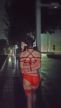 于是露露只穿了一件内裤与吊带丝袜,被日式捆绑起来全裸,走在马路上,期间有不少车流涌过,场面羞耻无比!!!!!