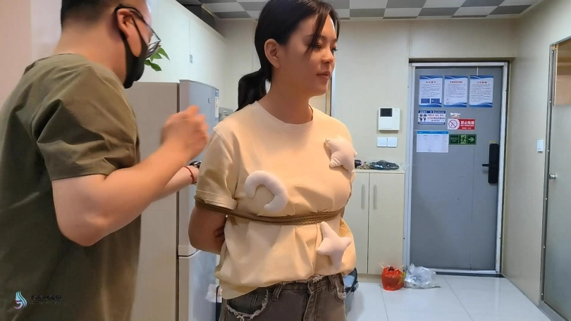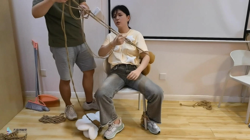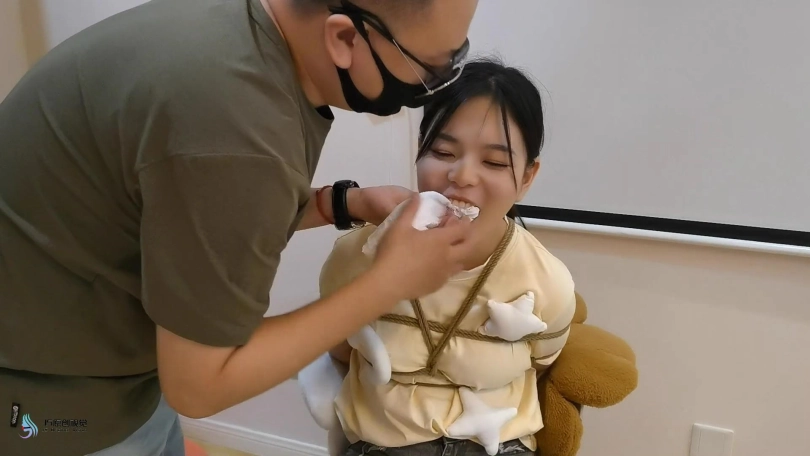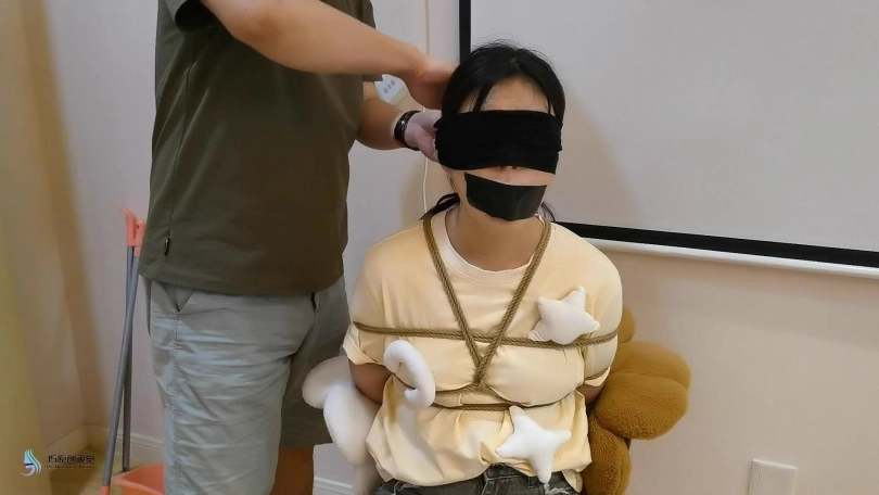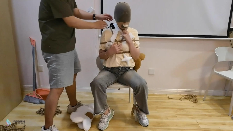 › 【JS】【梦琪】椅子上的束缚毛巾塞嘴胶带丝袜头套绷带口罩严密封堵