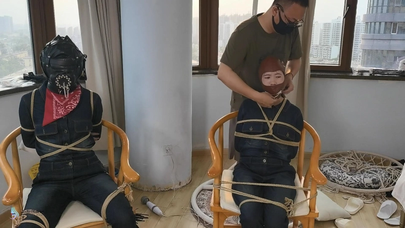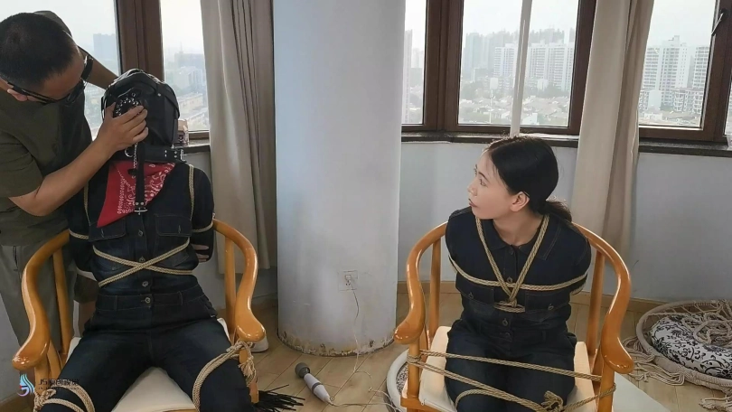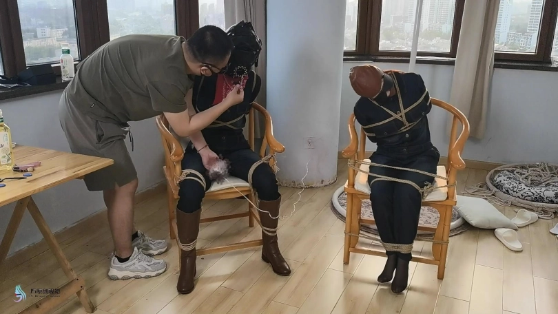 › 【JS】【欣妍 】【宫怡】绑了两个女牛仔靴子头套棒棒刺激