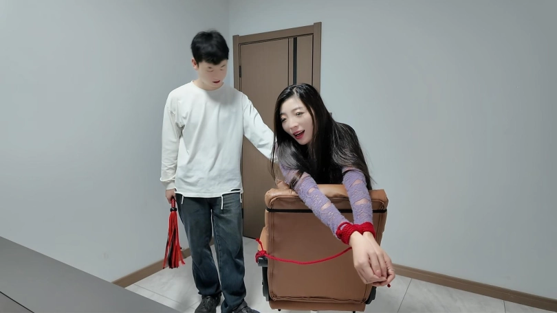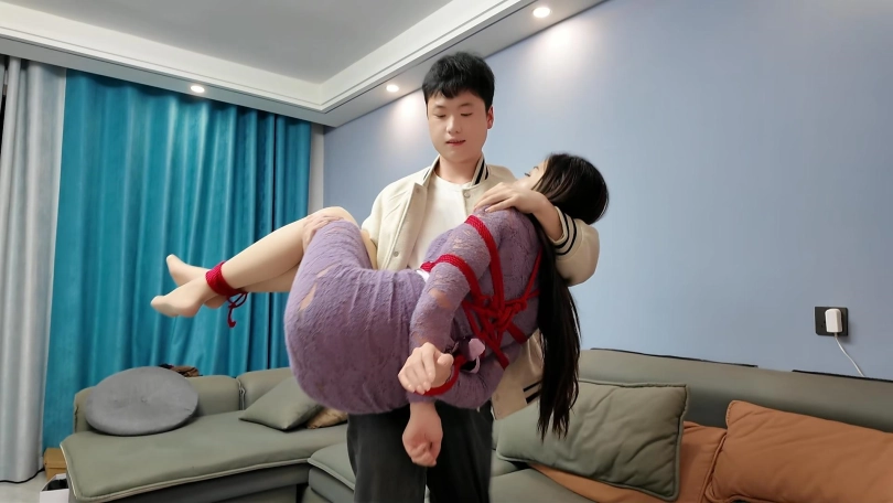 自从在乡下小院被儿子捆绑过之后,妈妈深深的喜欢上这个刺激的捆绑游戏,心里一直希望有机会再和儿子玩一场,这天正好儿子在家,妈妈就拿出早就买好的红色绳子,求儿子一起玩捆绑游戏,没想到儿子竟然拿出皮鞭,用力抽打,那娇羞享受的表情,简直绝了