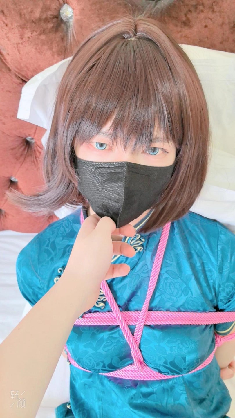› 【逍遥】线下约玩!欧酱修身蓝色旗袍粉绳捆绑挣扎!呜呜声真好听!