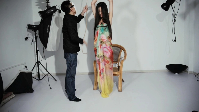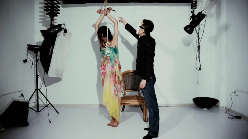 美女小月到闺蜜小若的城市旅游,小若带着她玩了一天,晚上来到“表哥”的住所留宿,却不曾想已经踏入了设计好的圈套中。或许是小月之前有些小事的罪过小若,趁着小月熟睡,小若悄悄的起身,于是策划好的阴谋开始执行了,小月先是被迷晕,牢牢被绳子固定在床上,小月大声无助呼叫挣扎,又被除去衣服内衣渔网缚在沙发床上,为了增加她的羞耻感,给她裹上薄纱,薄纱连接着重物,又连着一根铁棒放在她手里,电击棒的攻击下,她不得不丢到铁棒,任由重物把唯一裹在身上的薄纱带下,这可是她自己脱的哦!
