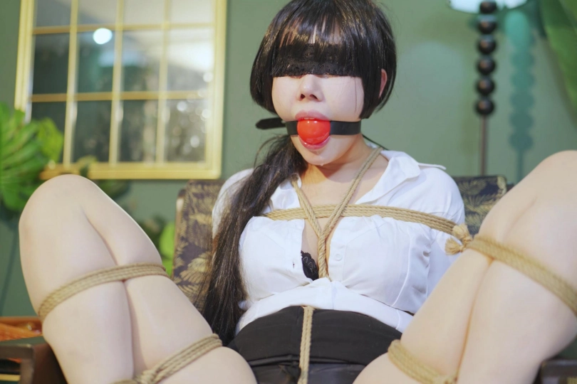 M腿束缚强制分腿在加上一根股绳 把她的肉丝衬托的更加有欲望