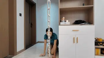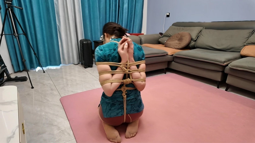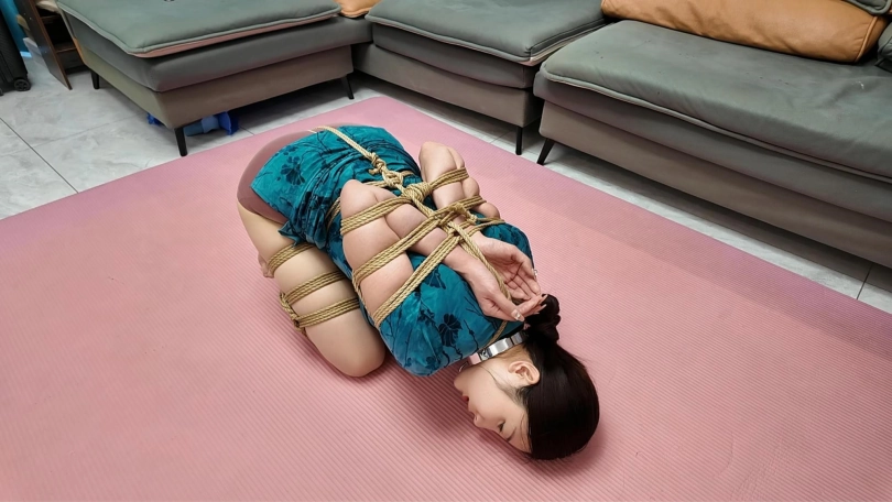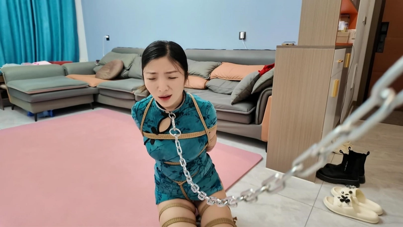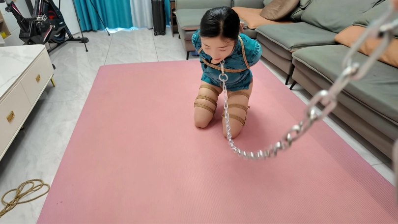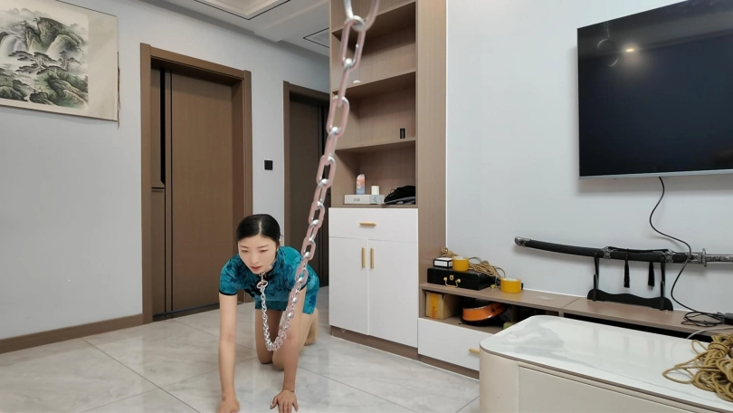 佳佳的柔韧性越来越好了,今天给她来一个极限后手观音,在加上M腿,铁链牵着爬行