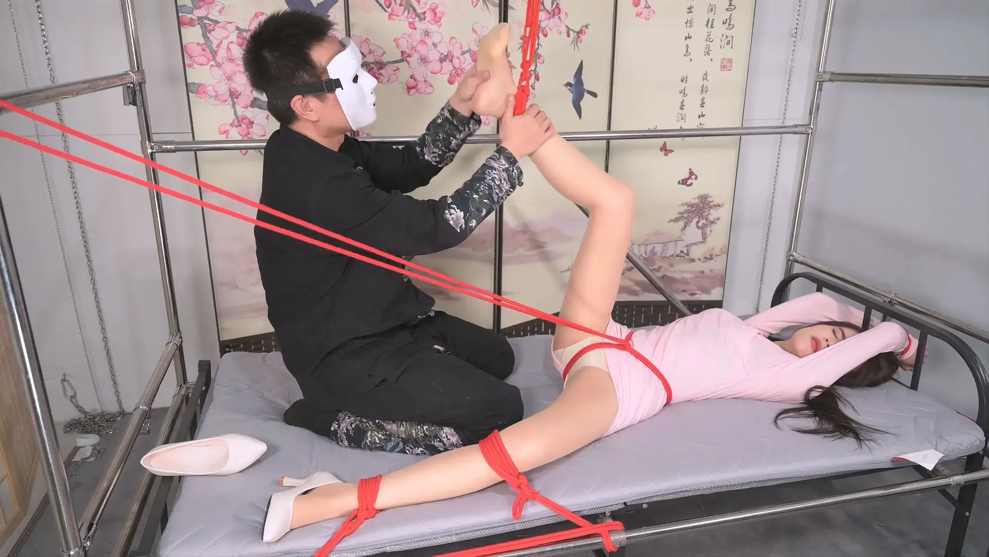 查看完整版本: 【撒琅制造】双S齐动手将言妍红绳吊腿调教,请就着文本解说一同食用--女王装、足弓、股绳、刺轮、TK、百合、闻脚、女女贴贴