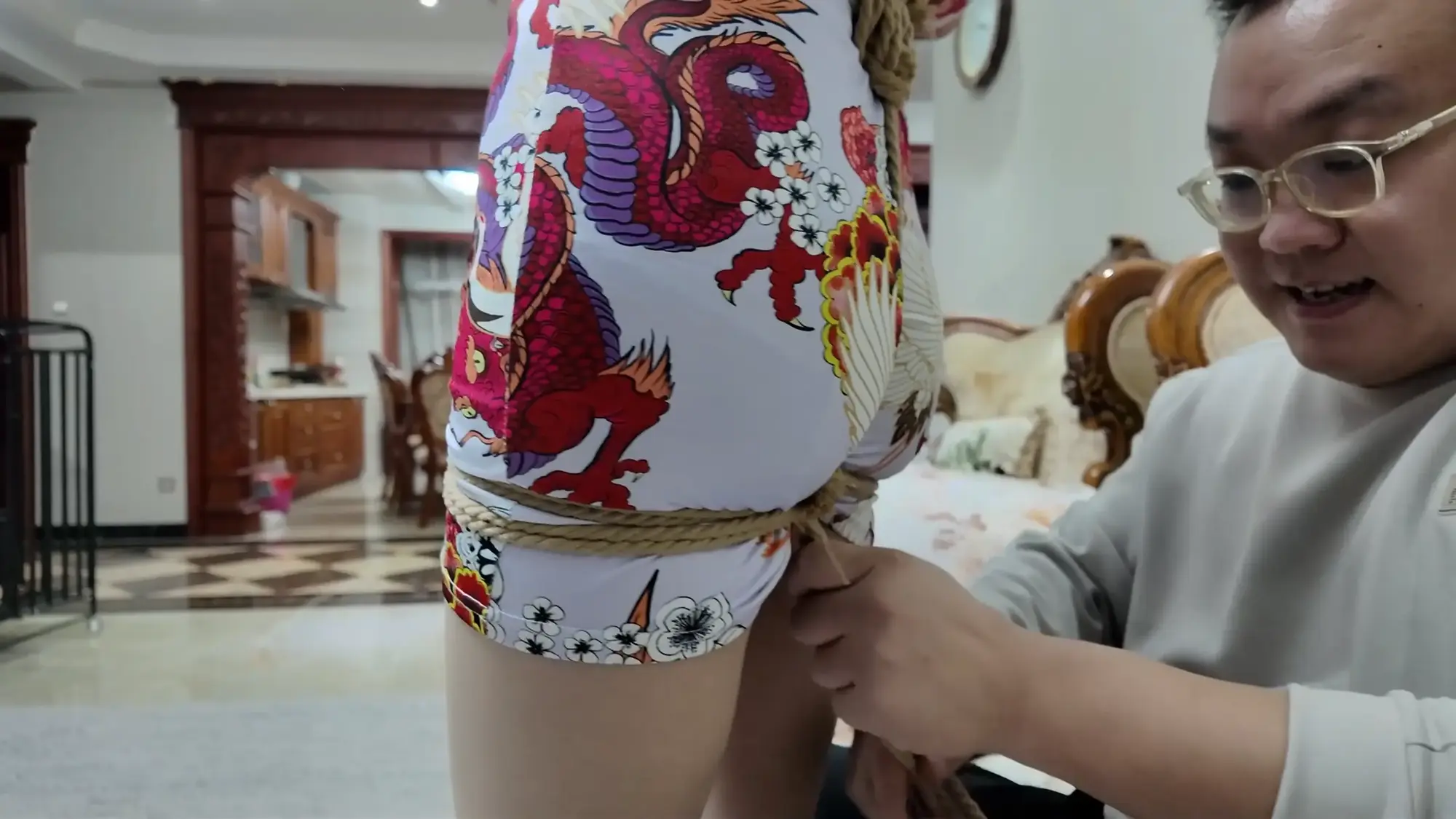 婧伊小姐姐,身形高挑的她搭配修身紧身旗袍特别好看,虽然她瘦瘦的,但是绳子勒紧之后屁股还是显得蓬蓬的,打屁股那段特别爽,她属于那种柔柔弱弱感觉的女生!
