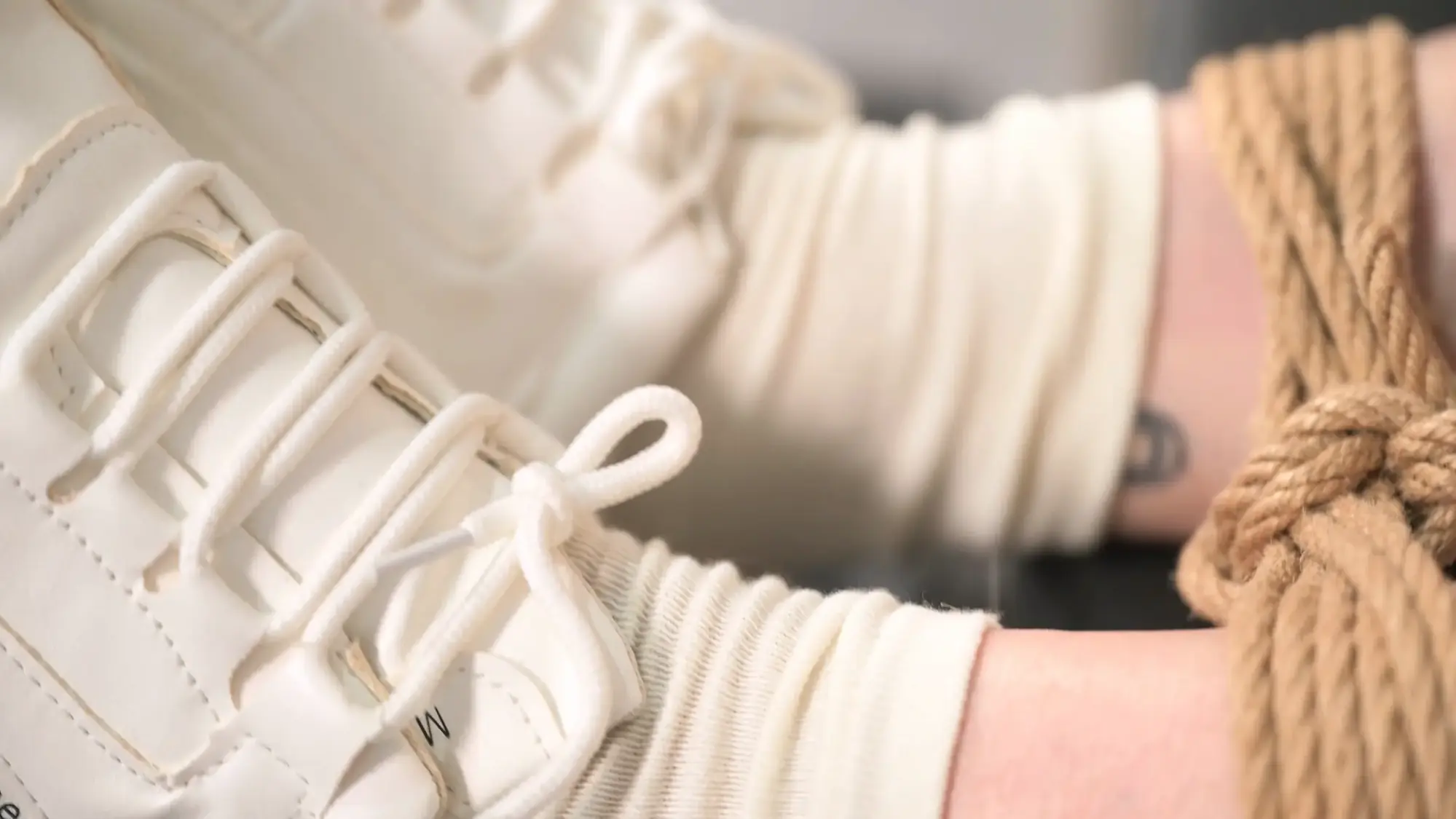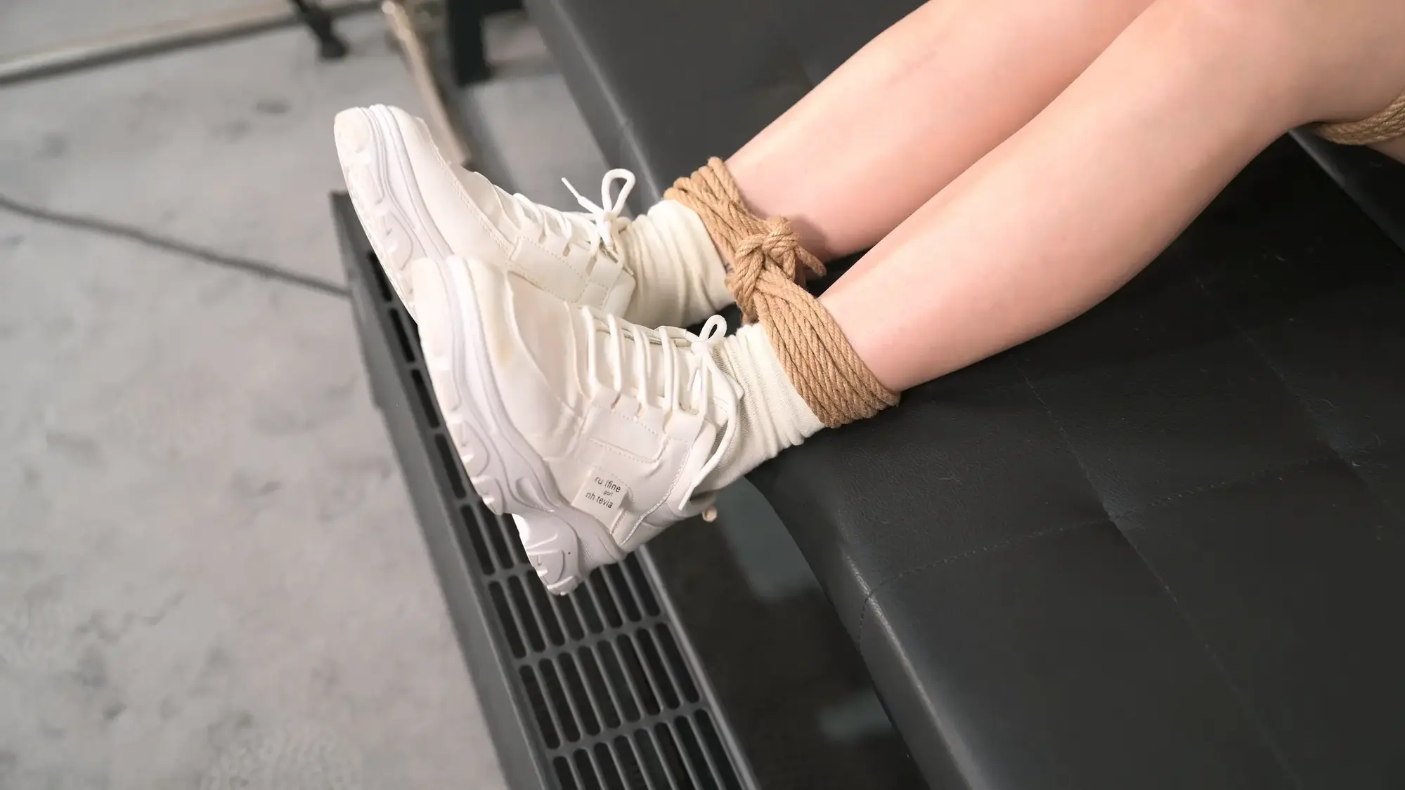 有句话叫太上心就变态了,当你对美腿玉足的喜爱达到一定程度,行为就不能被常人理解,幸好我们这里都不是常人。当我们把玩玉足,当然要带一点味道才好,味道或浓或轻就依个人口味了,只是夏天还好说,可以挑最热的时候带妹子去户外徒步一圈,可到了天气冷的时候就不好办了,于是有了今天的设计,给妹子穿上棉袜和加绒的运动鞋,然后用麻绳捆住,别让她跑了,再用我这无敌电暖气给烤上,简直是完美解决方案。由于是第一次尝试,雪碧好像没领会我的意图,她以为是一种酷刑,展现出高质量敬业精神,辛亏中间我摸了一下鞋子,已经烫手了,咱的目的是发汗,这属于大火爆炒了,赶紧改成小火慢炖模式,等发出汗来就可以出锅了,如此热气腾腾的棉袜脚还是第一次品鉴,特别给了浅景深大特写,最后当然要把这双棉袜密封作为实验数据,喜欢的话以后继续尝试。