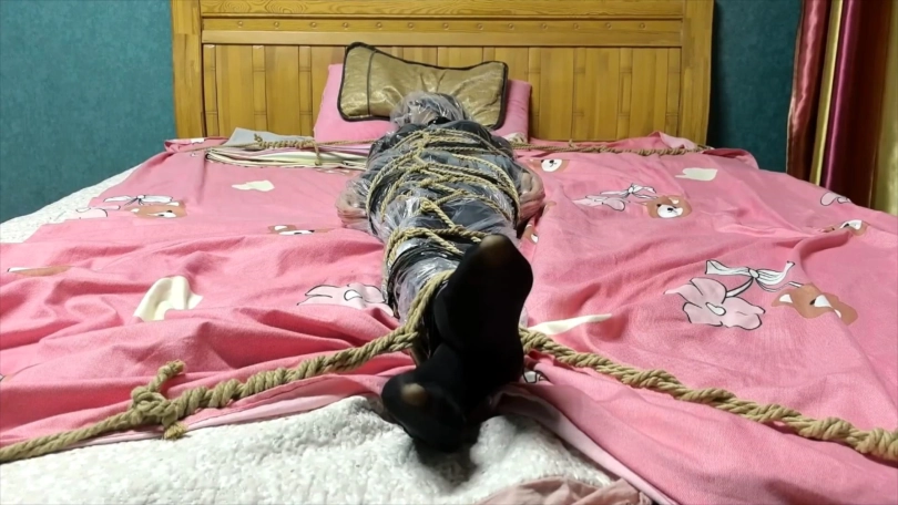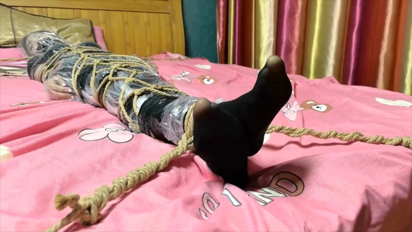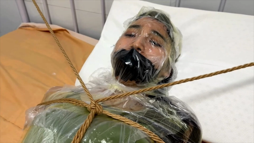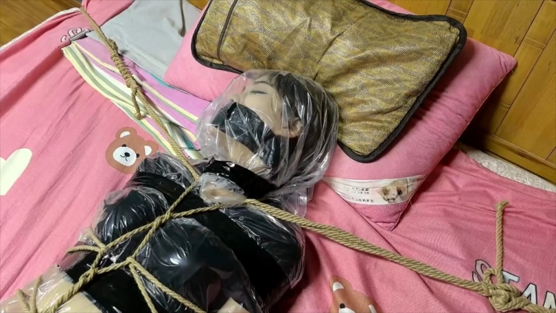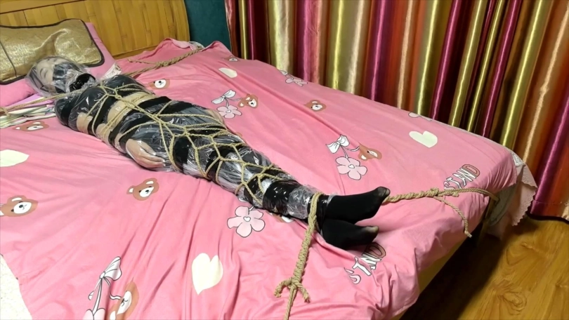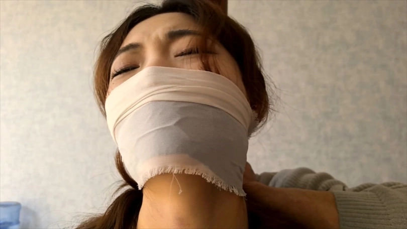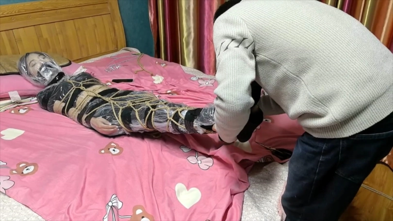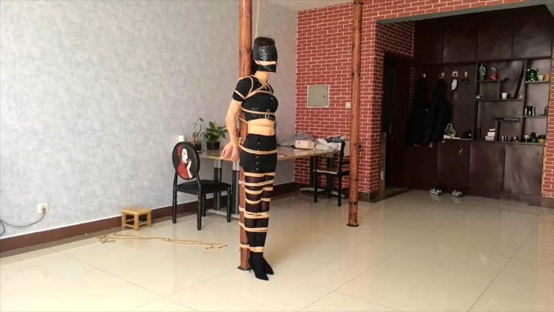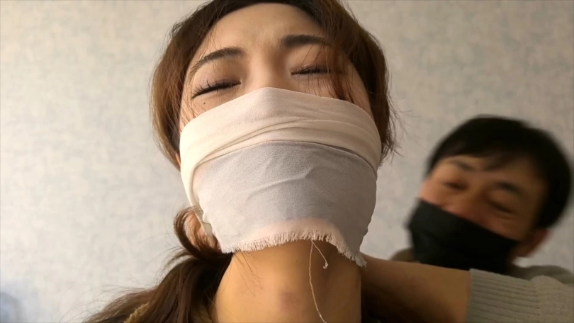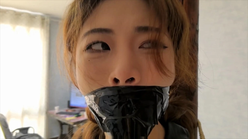 被绑在柱子上的希潼不肯向男人屈服,于是男人让希潼看到可可是如何被他捆绑调教的。之后他用布捂住希潼的鼻子,直到她昏迷。