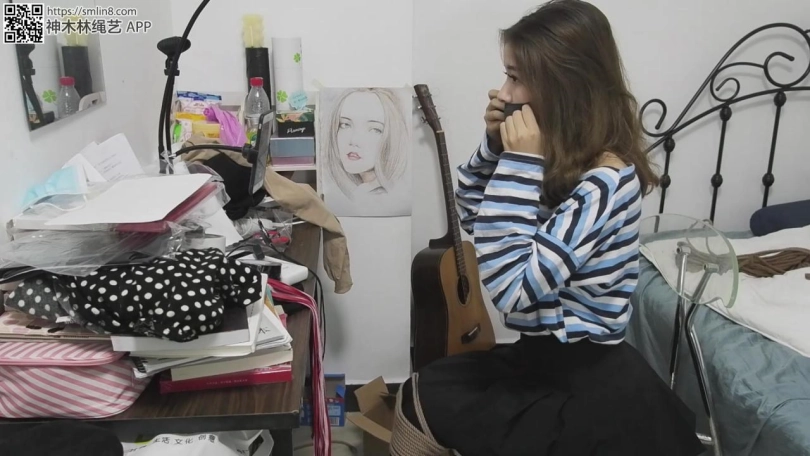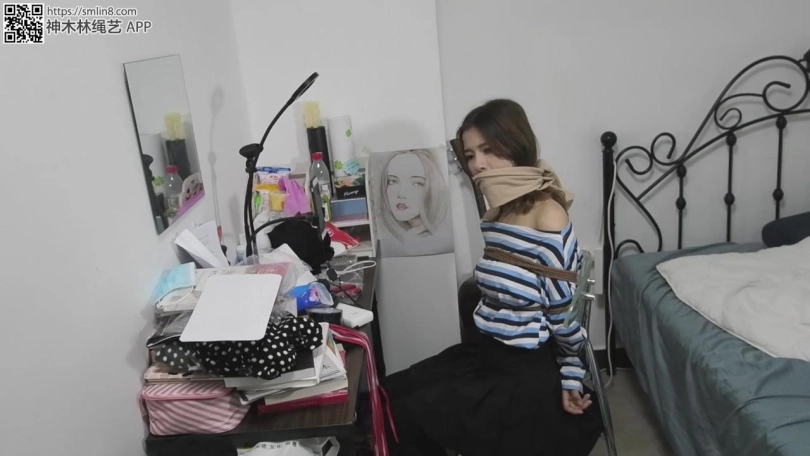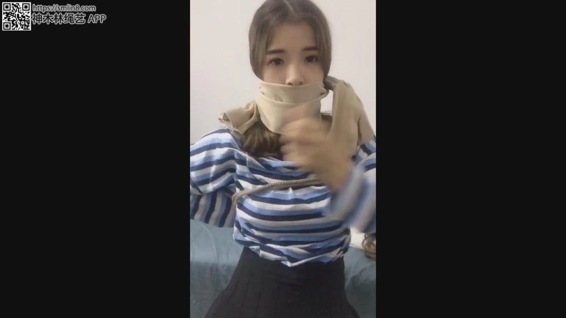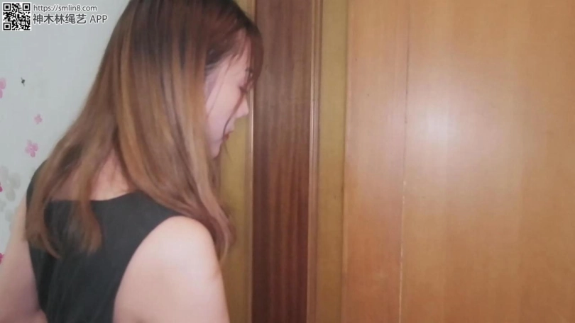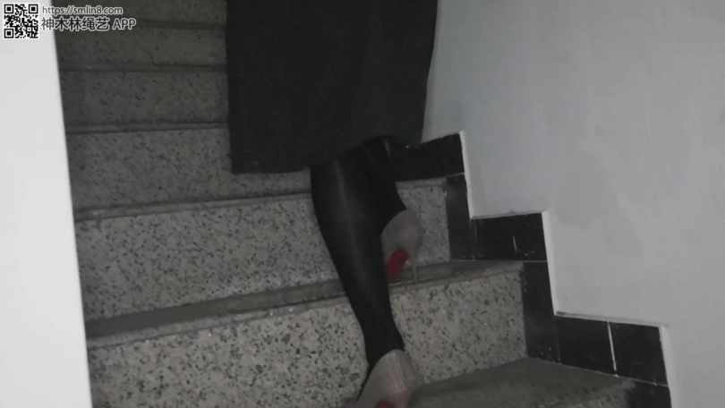 现在开始自缚,王娜按照要求用绳子将自己的大腿根先捆住,留着只能小碎步行走的距离。然后拆开薄丝袜,塞