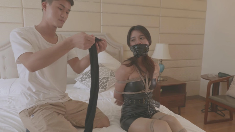 但是张强不但没有解开她,反而按照从视频上学来的一套,把王娜重新绑了个结实,而且更加诱人,然后在塞