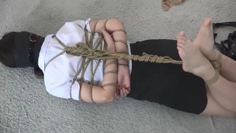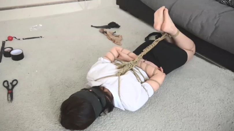 看点:五花大绑+驷马;日式捆绑盘腿坐缚;蒙眼;呜呜闷哼挣扎;裸足脚面特写。
