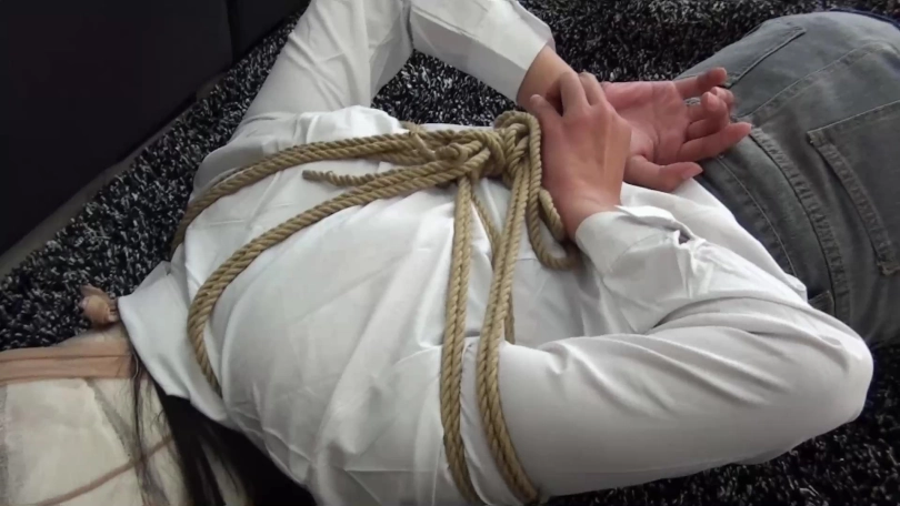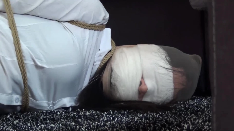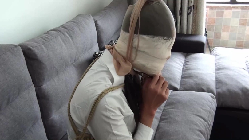 劫匪让笑笑坐好,拿绳索将其双腿与脚踝并拢捆绑结实,甚至还将笑笑脚面并拢捆绑了几道,最后,劫匪用一条肉色连裤丝袜套在笑笑头上,扬长而去。