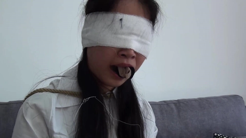 看点:棉袜+短丝袜搭配塞嘴;胶布纱布多重缠绕封嘴;连裤丝袜套头;蒙眼挣扎;挣脱解除塞嘴封堵