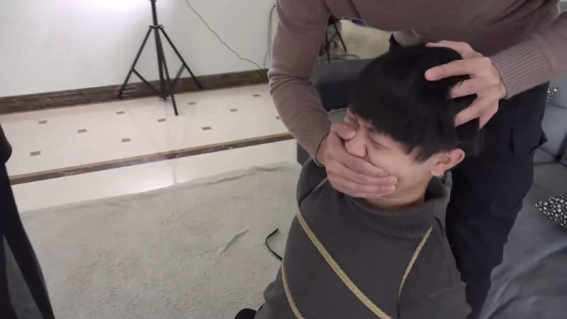 片段6:与男友一起上门讨债的大胸美女李沐子被坏女人文清及其表哥捆绑,二次塞嘴封嘴折磨。