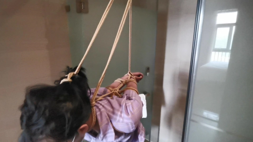 【JS】琳洛 后手吊 思袜堵嘴蒙眼 胶带封嘴 抽打