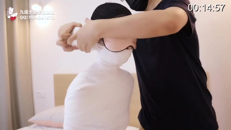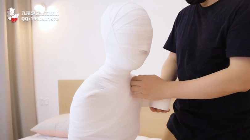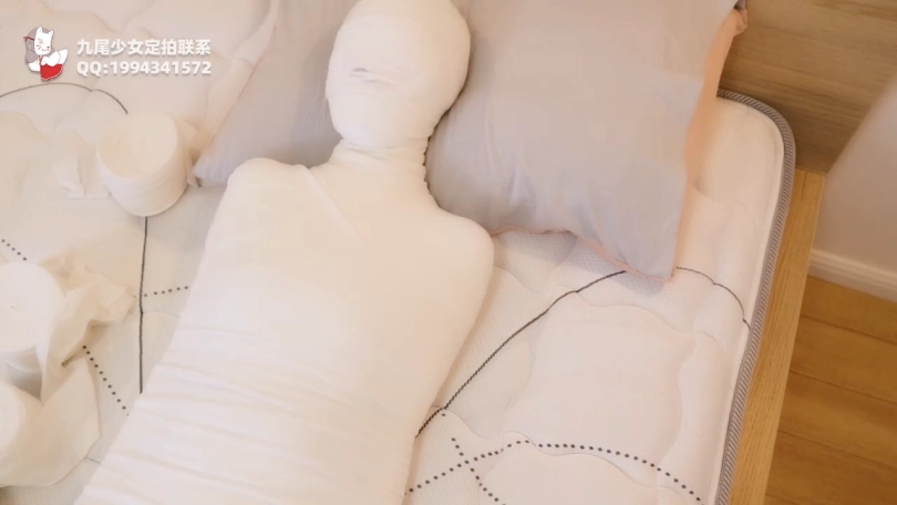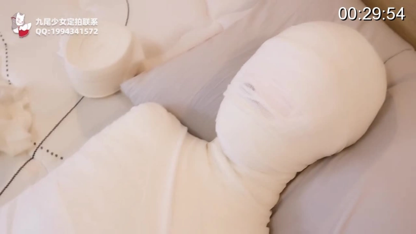 【九尾少女】300米五层绷带+纱布包裹的木乃伊全包地狱体验,木乃伊经历实录,头部被多重严密包裹全身紧绷更加使呼吸被严重压迫,全包木乃伊封闭禁锢挣扎!