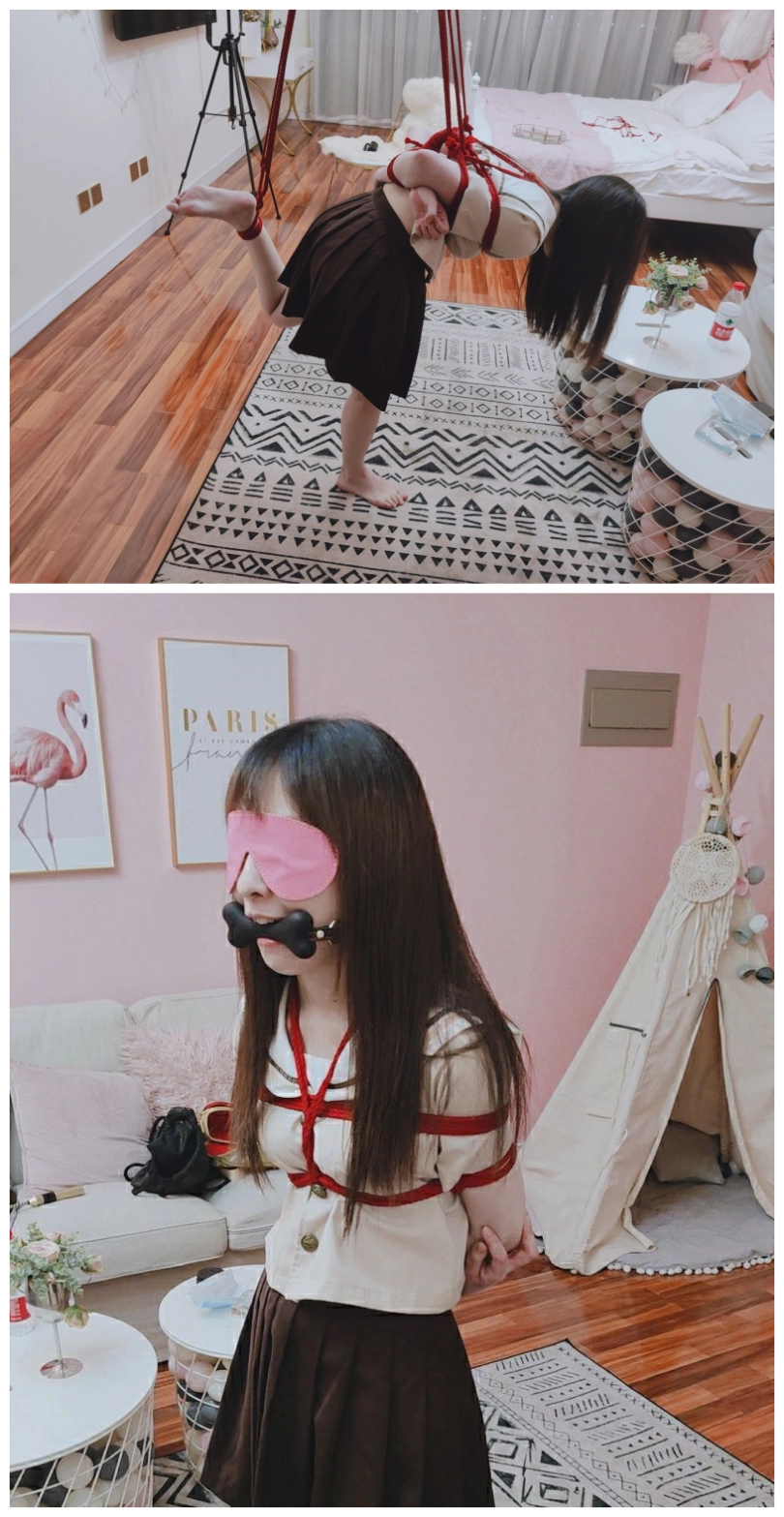 今天的小萝莉体验的是单腿吊缚,因为只有一个吊点,再加上小萝莉的腿太过纤弱,导致小萝莉的腿摇摇晃晃站也站不稳,好几次差点摔倒,甚至大腿也有些抽筋了。