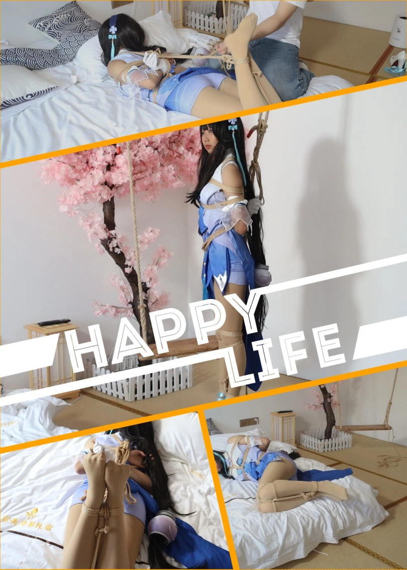 西施妹子被日式小高手紧缚,双腿被紧紧并拢一起,吊在秋千的粗绳上面。后来实在累了,就换成驷马紧缚,休息一下。小脚丫动来动去的好可爱啊。