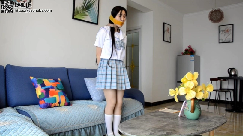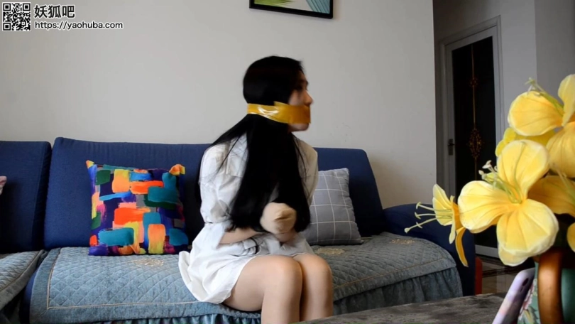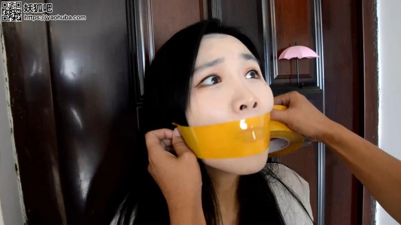 封嘴劫二。(特点封嘴红唇,还有丝袜美腿,以及呜咽声和挣扎)(多给嘴巴和丝袜特写,念诗的时候要相对大声一点,对比前作可以适当大声一些,念诗的镜头为电脑界面和现实穿插)沈晨经历封嘴劫难后,被密不透风的丝袜蒙住眼鼻,生死未卜。与此同时闺蜜,挂断和沈晨的视频电话之后,还在嘟囔着:装什么装,半天不说话。却不知道劫匪急冲冲的离开沈晨家,居然是在翻动沈晨的手机后,发现了闺蜜女主的地址。劫匪溜到女主家里,看到女主丝袜美腿,以及她的性感裙子,居然有些按奈不住。开始装扮女主穿着两双肉色裤袜。女主正在对着电脑开直播。(直播界面就用单机直播间或者你随意操作)女主起身去喝水,却被一把刀抵住腰部(刀具也别太真,之前封嘴劫一感觉有点危险。)女主:啊...你..是谁?劫匪:不想死就乖乖听话!女主:啊....你这是违法犯罪!劫匪:我最讨厌别人叽叽喳喳了!劫匪站在女主身后,挟持着女主,拿出透明胶带,“自己封上!”女主撕开胶带后一犹豫,却直接丢掉,“变态!”劫匪亮出刀:要么让我一刀一刀活剐了你,要么就张嘴把自己的臭嘴堵上。劫匪:把鞋脱了,丝袜脱下来!女主:你马上离开,否则我报警。劫匪:再喊我杀了你!(催促她脱)女主拖了鞋,脱下丝袜。女主十分抗拒,慢慢举起丝袜,塞入嘴里。劫匪手上用力,刀碰到女主大腿。女主焦急而又不情愿的把丝袜抵在嘴边,劫匪顺便推了一下女主的手,女主手一送,把丝袜一下送入嘴里,填满口腔。女主发出干呕声,显然是丝袜太胀嘴。劫匪翻动背包发现了丝袜,当成绳子。女主的手被丝袜正手绑住,手掌合住套上一双丝袜(短丝或者其他),或者静电胶布(不一会就要挣脱开的),手肘被绑在腰上,所以手的姿势受限制。而劫匪却拉开胶带作势封住女主的嘴,女主往后向缩,挣扎着跑完门边。女主一边走:呕..呜呜...女主被追上,被一把拉住按在门边,胶带哗啦一声拉开,印在女主的红唇上。女主发出一声不甘的叫声,发出诱人的呜咽。劫匪:你还在做直播呢,继续播!女主心道这是一个机会,还以为劫匪是傻子,凑到直播间前,美腿被丝袜绑住坐在电脑前。可以加旁白。呜呜的大喊起来,发出含糊不清的救命二字。(可以稍微大声一点)他的刀在她的丝袜美腿上不断晃悠,手也不断划过女主的美腿,半分钟后,劫匪却直接离开这里,去卧室搜索钱财。女主:呜呜呜...我被封嘴了..救我(声音发出清楚程度为百分之五十,体现女主的焦急)直播间的人并没有发现异常。劫匪离开之前笑了笑,低声道:这可是特制,没人看得出你的异常。女主还以为能得救,听到是特制胶带之后,在电脑前就变得极其抗拒,不断发出模糊的求救声。劫匪没有管他在屋子里搜索起来,找到了一些丝袜。(劫匪拿了银行卡,准备撕票,可以加台词)女主见到劫匪手里的银行卡和刀吓了一跳,急忙道:“呜呜...别...杀我...”害怕劫匪听不清,急忙拉过劫匪手中自己的手机,用手在手机上的微信上打出,“别杀我,我都听你的!”(这正是和沈晨的聊天框,之后又趁着劫匪不注意发出了消息)劫匪拿开女主的手机,拿出一个稿件:还敢抢手机,想去报警?嘴被封上说话,倒是很好听,把这个念完我就放了你!女主不断摇头,但看到刀,又不得不配合。(念诗时劫匪不要面)稿件上是一段古诗:大江东去,浪淘尽,千古风流人物。(对着直播界面)故垒西边,人道是,三国周郎赤壁。乱石穿空,惊涛拍岸,卷起千堆雪。江山如画,一时多少豪杰。(女主时不时抬起头害怕的看了看镜头)遥想公瑾当年,小乔初嫁了,雄姿英发。羽扇纶巾,谈笑间,樯橹灰飞烟灭。故国神游,多情应笑我,早生华发。人生如梦,一尊还酹江月。女主费力地努努嘴,发出呜呜声(稍微大声点)。直播界面的人不明白主播在干嘛。女主坐在电脑前,看着一旁的稿子念了出来,透过丝袜和胶带发出含糊却偶尔清晰的声音。劫匪往屋内走去,不知道要干嘛。女主借机急忙用尽全力腾出手来,撕下来胶带,本想在直播间大声求救,却忘记了堵住嘴巴的丝袜。(糟了嘴麻了,没办法张开!)旁白女主焦急的环顾四周,将黄色胶带撕下一截,封住嘴巴(补上口红,要在黄色胶带封嘴后,能看到漂亮的红唇)女主对着电脑屏幕呜呜大叫,指了指嘴把,随即怒动嘴巴,示意自己被封嘴。可惜直播间的人还来不及发现这一变故,女主的小腿就被人握住。女主:呜呜呜...劫匪蹲在一边:穿上这条丝袜,不然我杀了你!女主 穿上另一双白色中筒丝袜,女主被拉到一旁。直播间人本来就少,加上女主网络不好,刚才封嘴的样子没被人看到。(女主穿了丝袜后被劫匪将手反绑,直播间角度看不到手被绑住)劫匪将女主拉到一边坐下,撕下一截胶带贴在女主鼻子上,女主挣扎一会。劫匪:还敢不敢乱来?女主:呜呜呜...(怒骂状态)(女主不断搓动丝袜美腿,一只脚穿鞋一只脚不穿,然后踢掉鞋子,)劫匪:性子很烈嘛,我也不为难你,再配合我念一段诗,我就放了你!(女主这时候换装成那个水手服装,下面不变,穿肉丝加小腿白丝袜。鞋子为带扣小白鞋,中途一只脚掉鞋,露出白丝)劫匪在黄色胶带封嘴之外,还加上一层肉色丝袜蒙住住女主的嘴(蒙一层吧,要能模糊看清黄色胶带封住的嘴),。女主犹豫一下,还是点头答应。(念诗的时候劫匪不要出现在画面之中)很为难的继续回到直播界前。“ 轻轻的我走了,正如我轻轻的来;  我轻轻的招手,作别西天的云彩。  那河畔的金柳,是夕阳中的新娘;  波光里的艳影,在我的心头荡漾。  