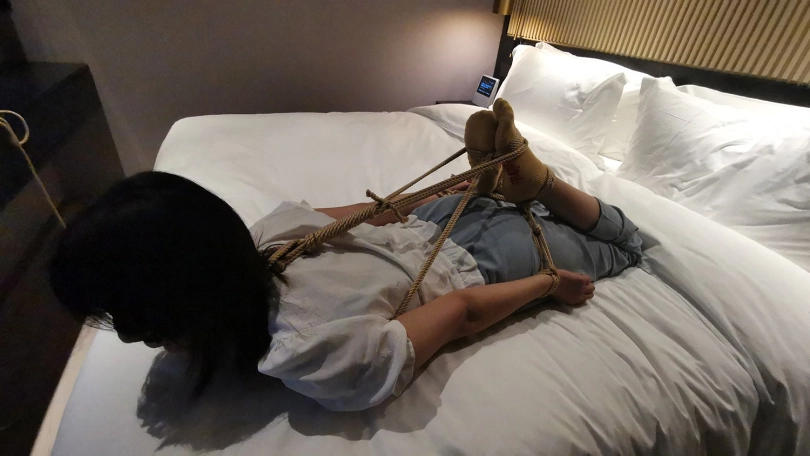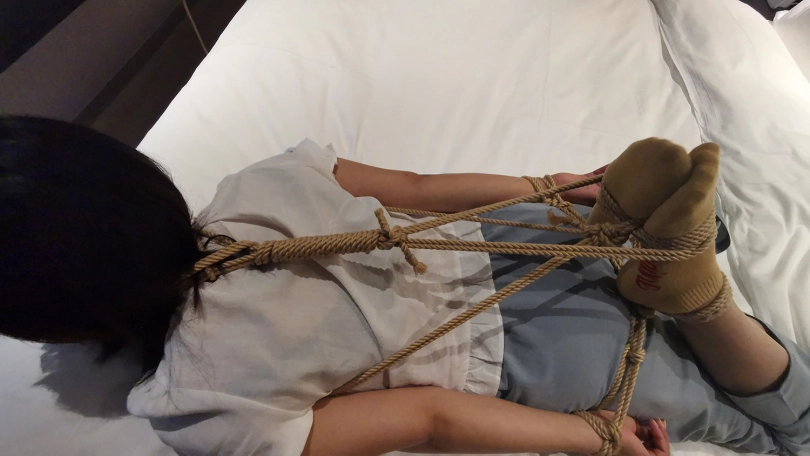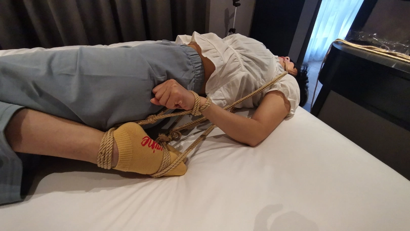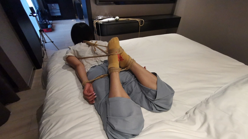 【JS】凌熙 床上变种驷马捆绑 棉袜 绳子勒嘴 快感棒刺激中呻吟