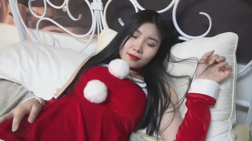 小晗换上圣诞红裙和白丝,躺在床上,做了一个刺激的梦...