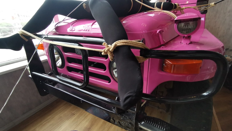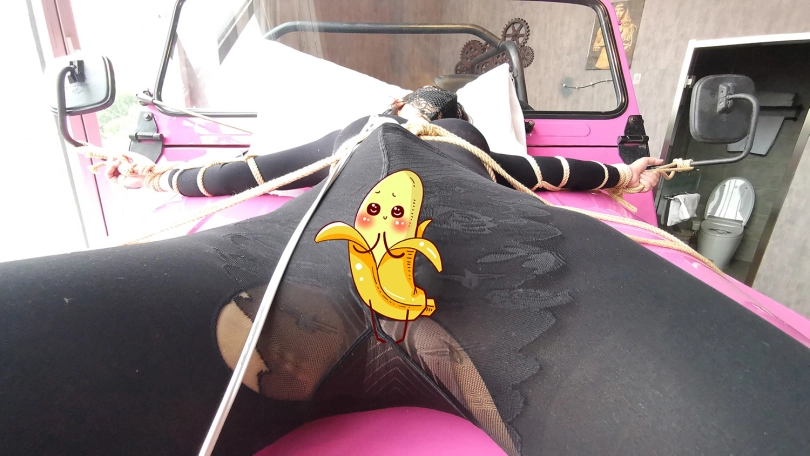 【JS】琳洛 车盖大字捆绑 黑色紧身衣 快感棒刺激